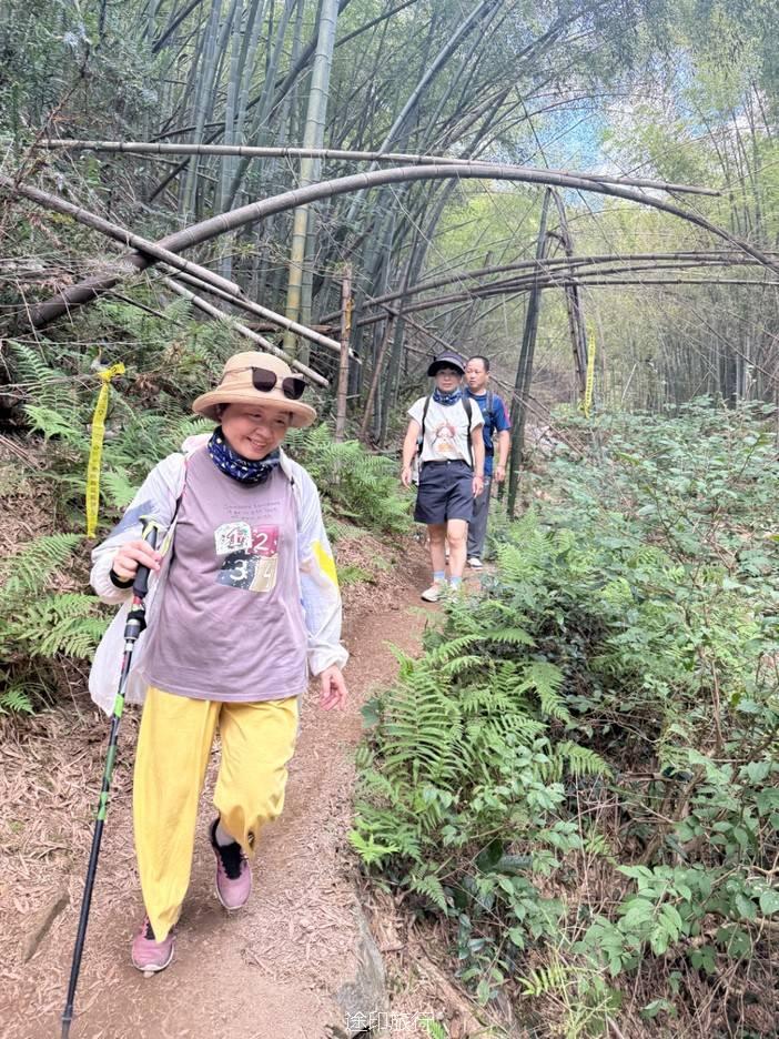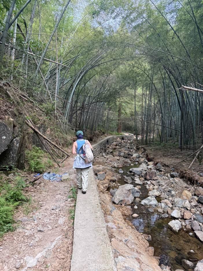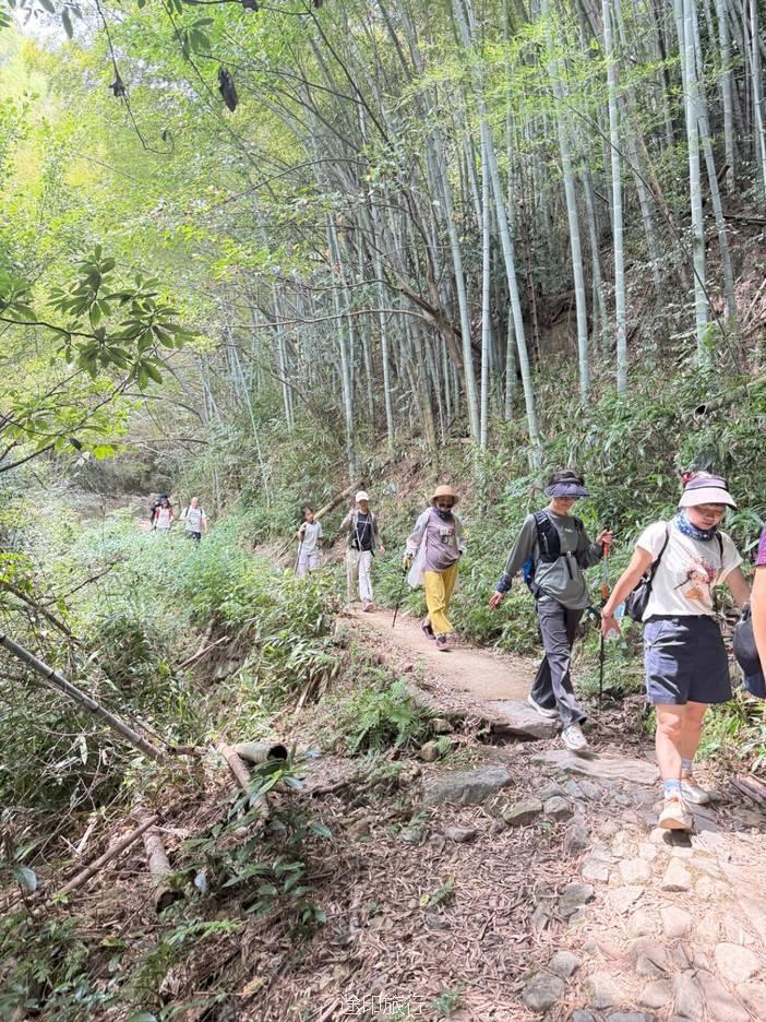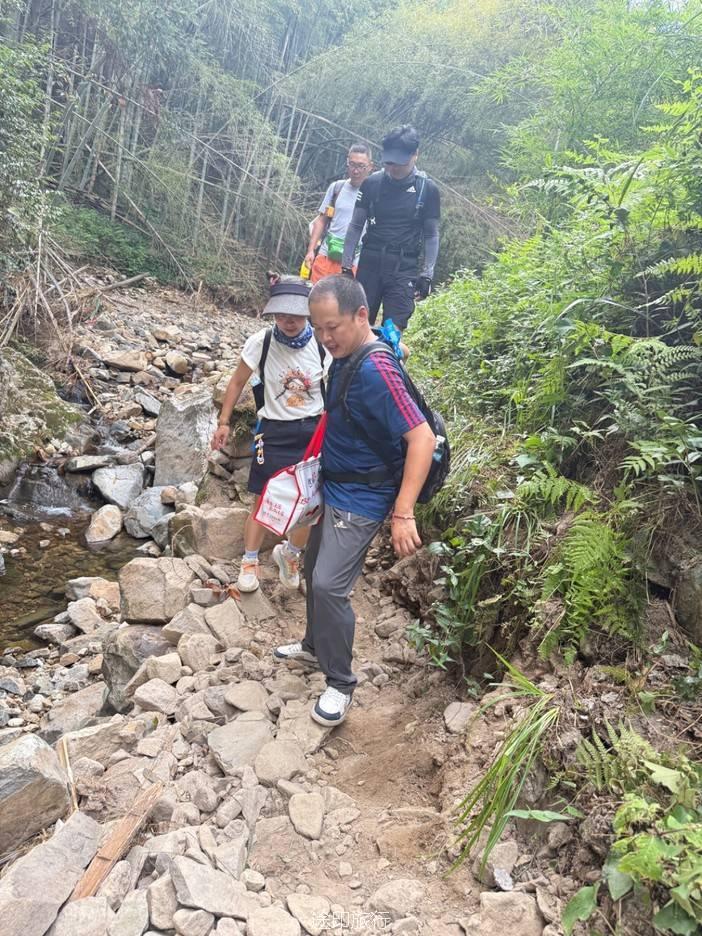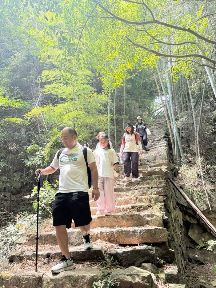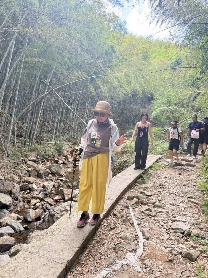 路上,我们也遇到了其他徒步队伍,天气炎热,蚊虫肆虐,但大家热情高涨,你追我赶,笑声不断。我们走的是逆时针方向,沿着上王岗古道前行,石阶、竹林、绿野、青山,构成了一幅幅生动的画面。途中,我们还遇到了小溪,踩水而过,凉意瞬间袭来,仿佛洗去了一路的疲惫。