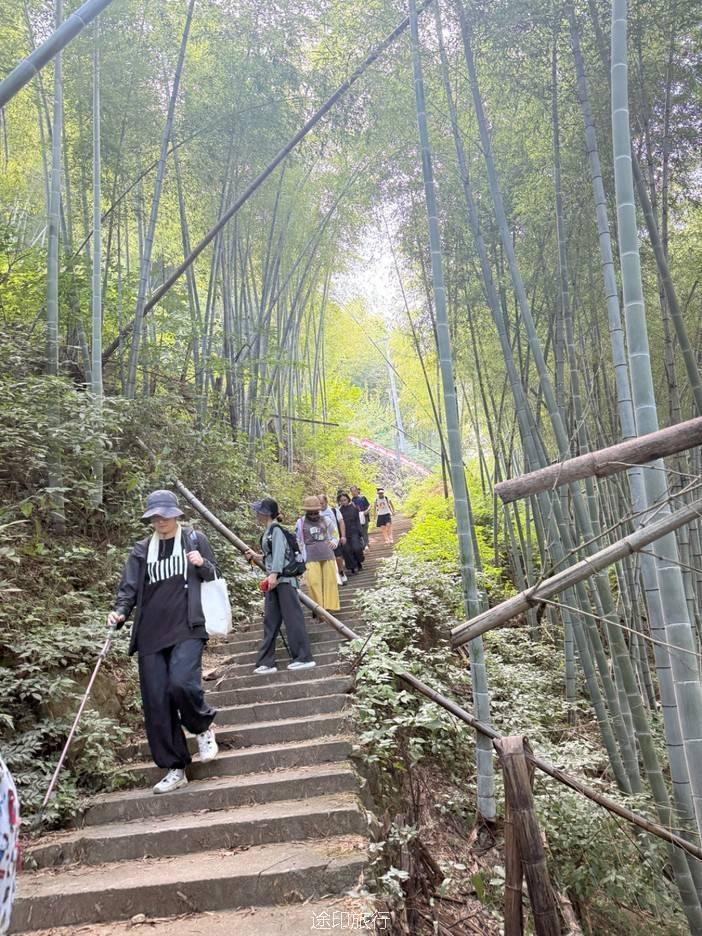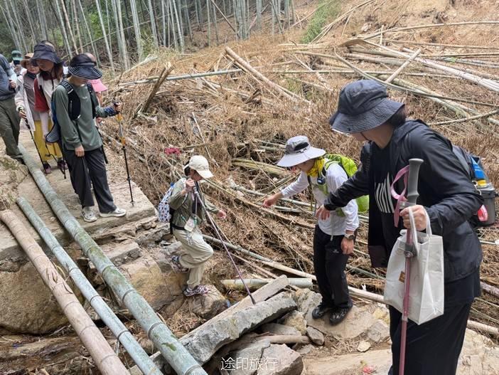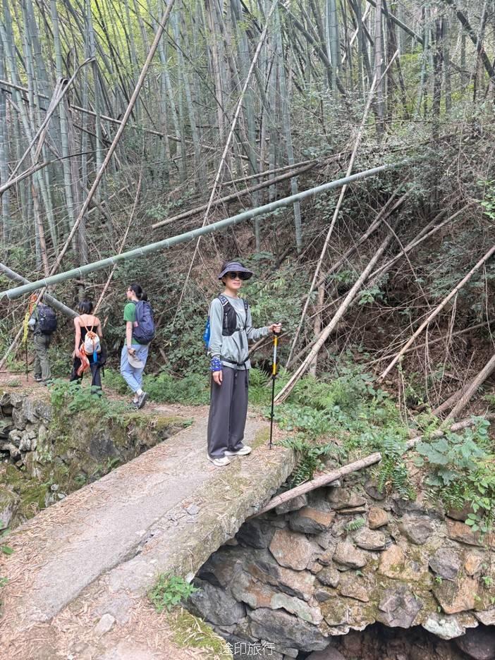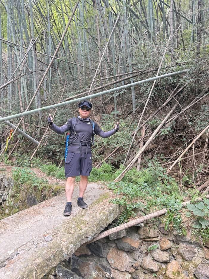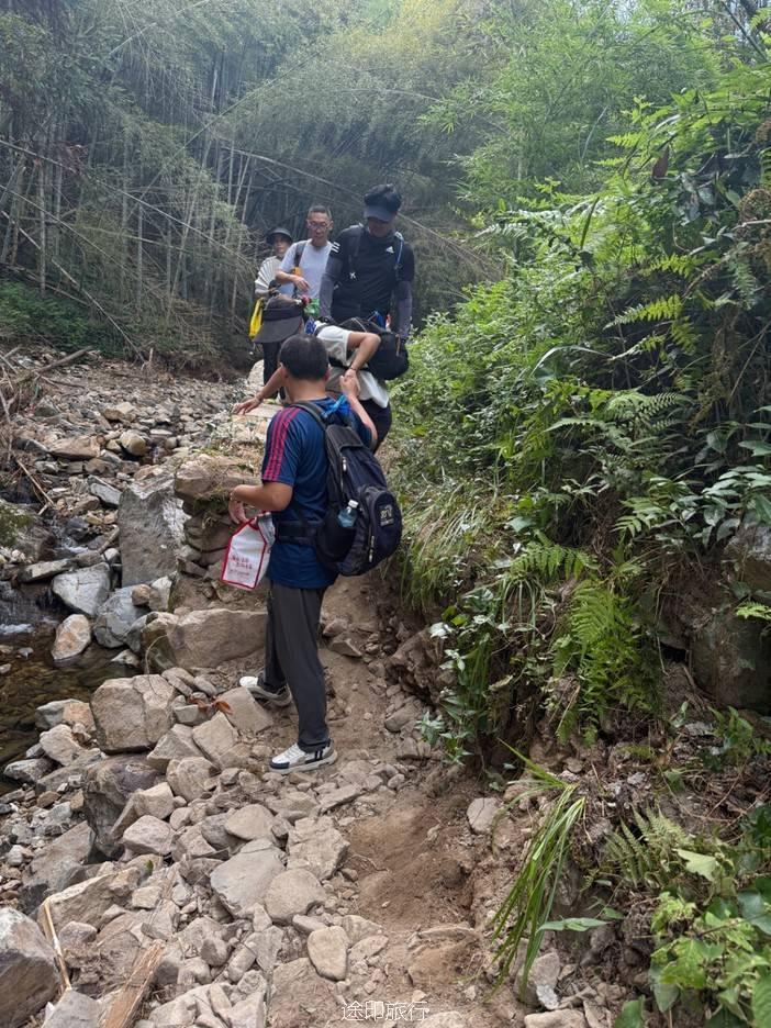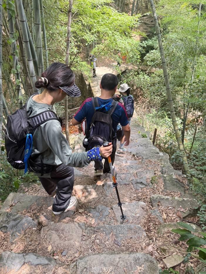 路上,我们也遇到了其他徒步队伍,天气炎热,蚊虫肆虐,但大家热情高涨,你追我赶,笑声不断。我们走的是逆时针方向,沿着上王岗古道前行,石阶、竹林、绿野、青山,构成了一幅幅生动的画面。途中,我们还遇到了小溪,踩水而过,凉意瞬间袭来,仿佛洗去了一路的疲惫。