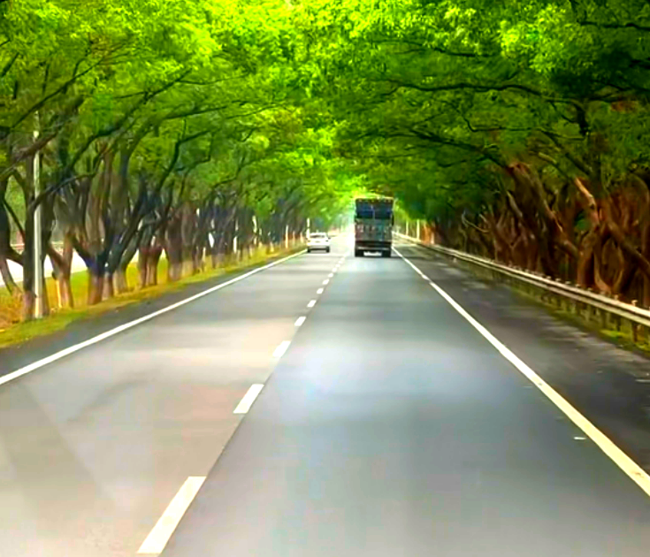 穿过村庄,继续前行,路两边的栾树此时正盛开着,可爱的人儿拍着照片,记录美好时刻。