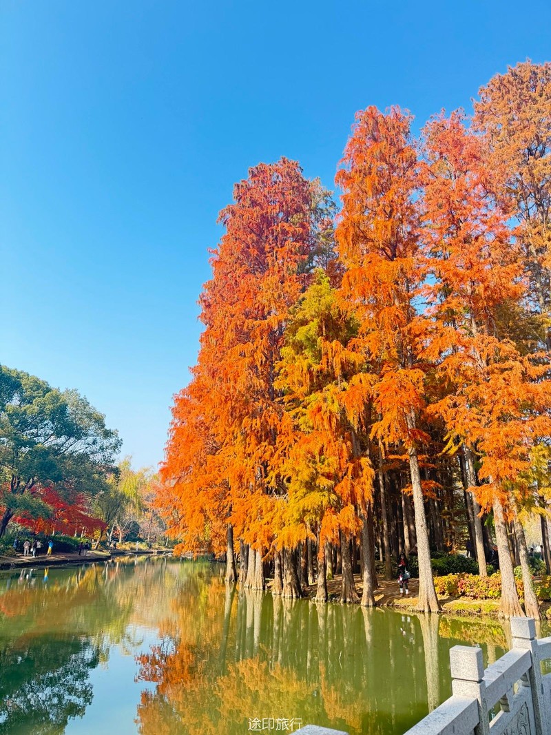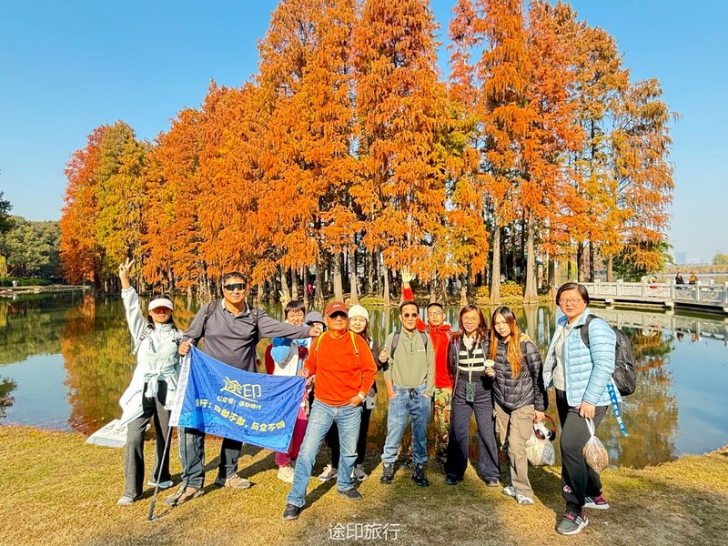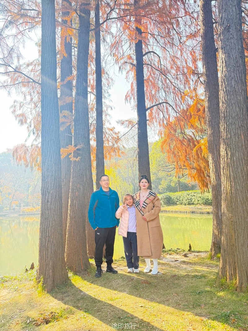 梦幻般的无锡鼋头渚,一直是我想来的地方。成群飞翔的红嘴海鸥和如画的夕阳,脸上不禁洋溢着期待。进了充山大门,映入眼帘的便是那片秋意盎然的水杉林。秋天的水杉与湖面相映成趣,五彩斑斓的树叶就像是被一只调皮的艺术家打翻的颜料盘,红的、黄的、橙的、绿的,色彩斑斓,仿佛每一片叶子都在诉说着秋天的故事。我带着大家在这片林间漫步,感受秋风拂过脸颊,温暖而清新。