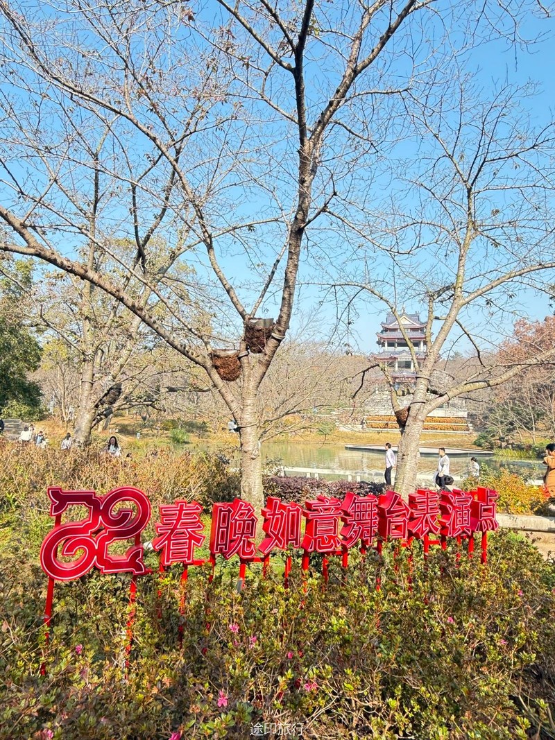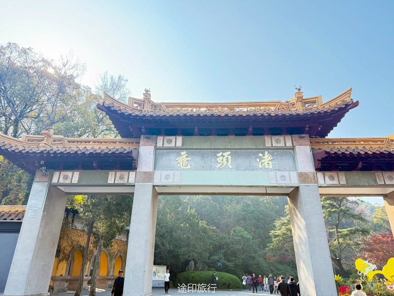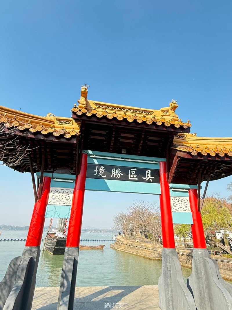 虽然樱花园的美丽在秋天略显萧条,但这份静谧与淡雅也让人感到别有一番风味。此时的园中,偶尔可以见到几树零星的花朵在秋风中摇曳,似乎在告诉人们,春天的脚步并没有远去,只是暂时隐匿。步行了约2公里,我们来到了标志性的鼋头渚牌坊。进入牌坊后,眼前便是游船码头。此刻,海鸥的身影出现在了我们的视线中。洁白的羽毛在阳光下闪闪发亮,飞翔的姿态优雅而从容。游客们纷纷拿出相机和手机,捕捉下这动人的瞬间。然后我们先去了长春桥。这里有一段小山路,爬上去后,便能看到广福寺的庙宇和远处的湖光山色。大自然的壮丽和人文的宁静交织在一起,给人一种无比舒适的感觉。