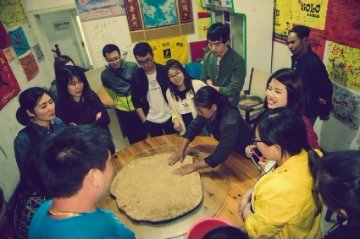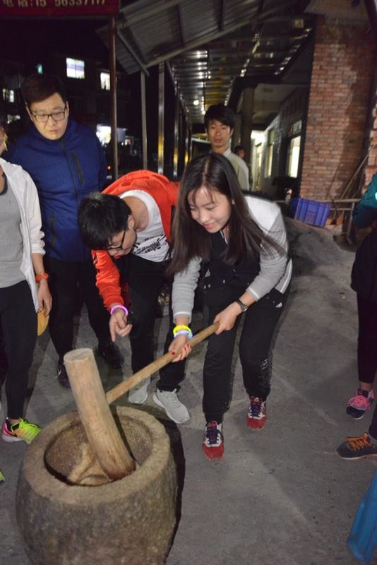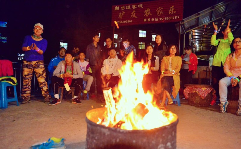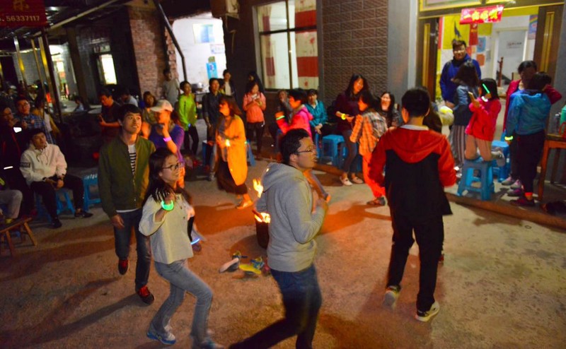 下面说说我们精彩的行程吧!第一天我们大家集合出发前往第一个目的地安徽宣城仙人洞的时候,大家由于路途的劳顿和第一天不大的活动量觉得没什么难度,胖胖这里也和大家卖了个关子,因为第一天咱们晚上才是重头戏,大家来到农家后大家享用了美味的晚餐后,随着胖胖卡拉OK的一声集合令,我们迎来了第一天的精华部分,篝火,K歌,荧光晚会,大家载歌载舞,大家都展露了最轻松最嗨的一面,唯一遗憾的是老板家的红薯发芽了,不能烤了……不过我们唱累了,可以体验农家的打糍粑,那是非常滴好吃的,边上还有小伙伴在狼人杀(有位史上最可爱上帝)原因我就不说了,