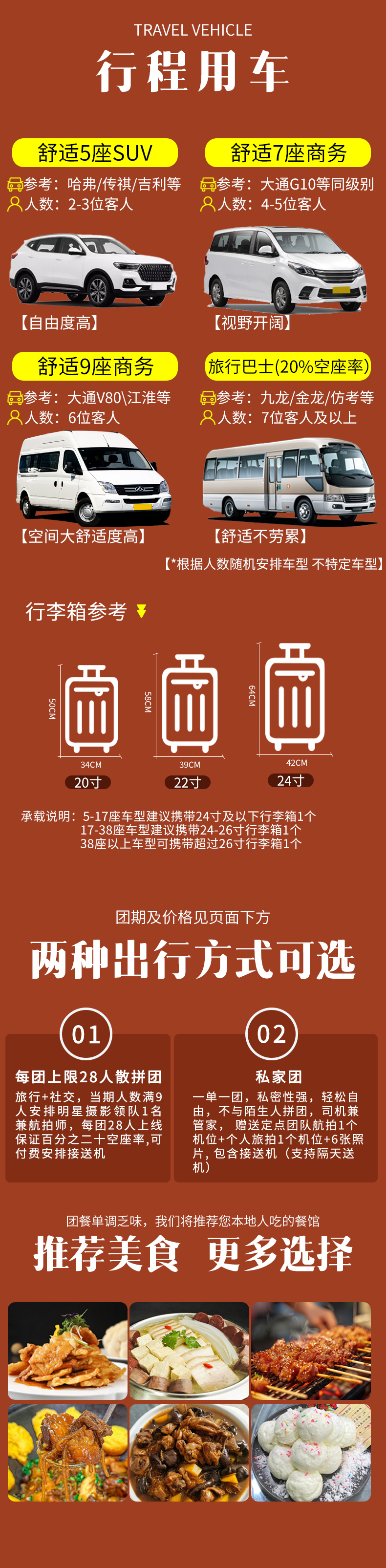 2、如果乘坐上午飞机的那您就可以不参加,自行起床退房,提早前往火车站或机场大巴站,避免贻误航班时间!