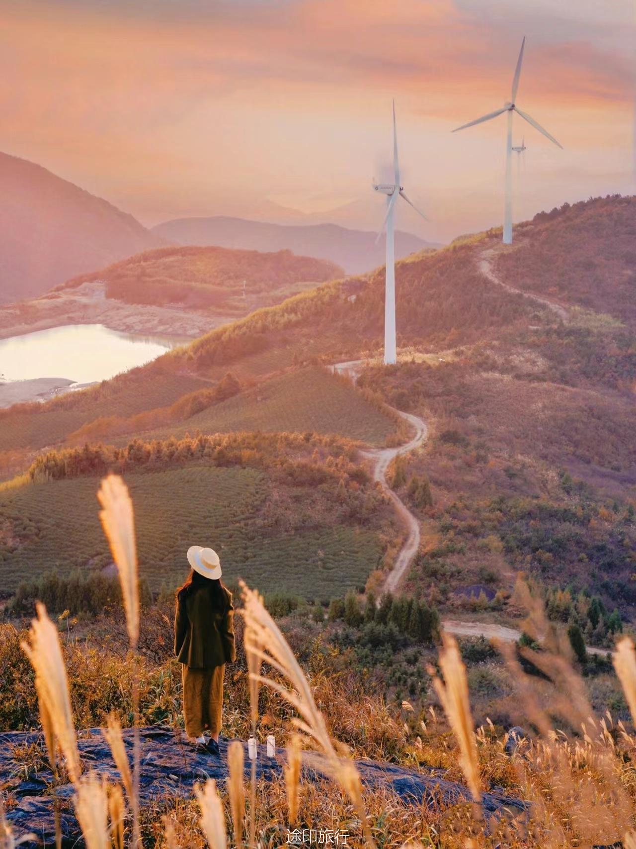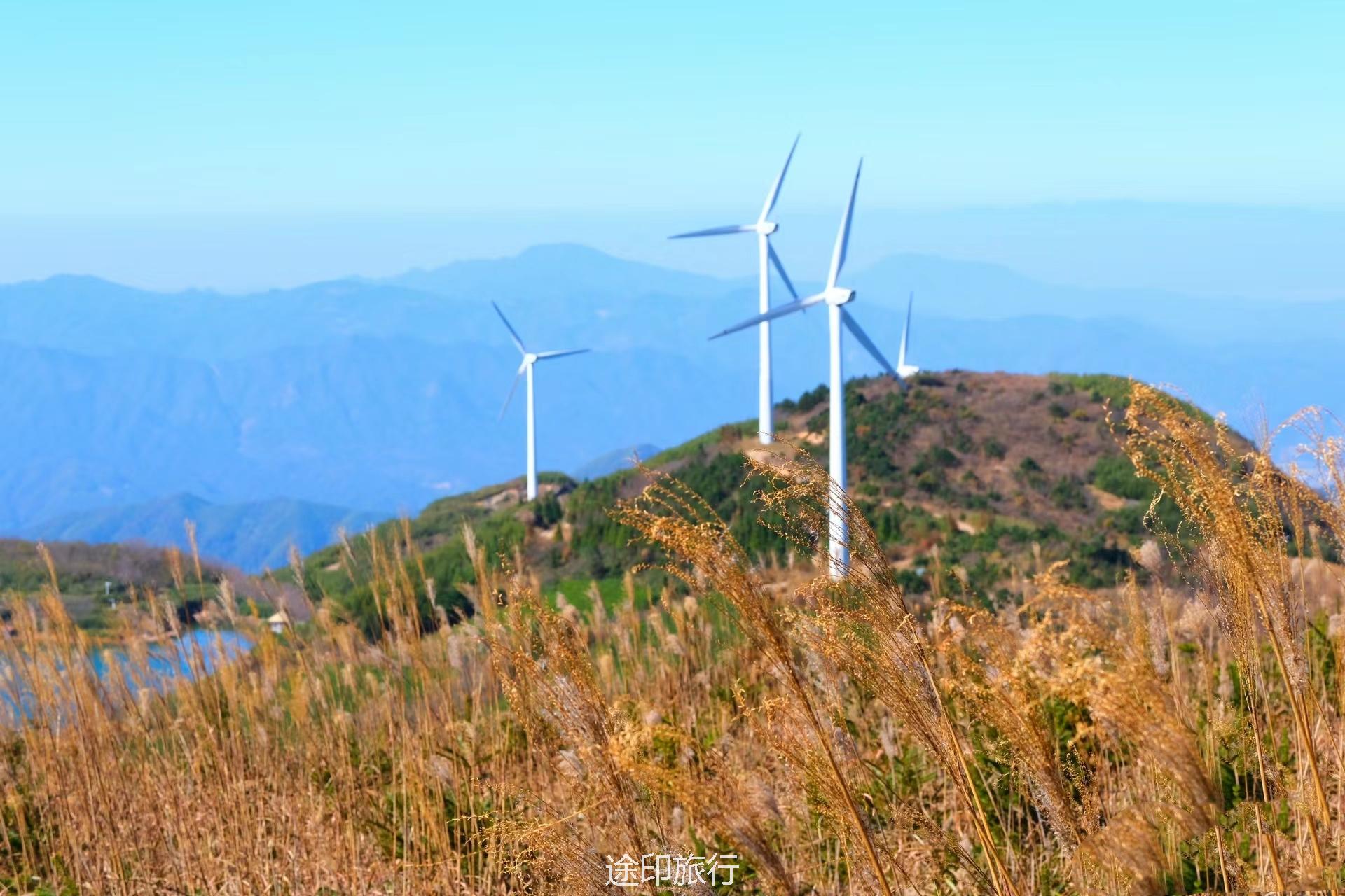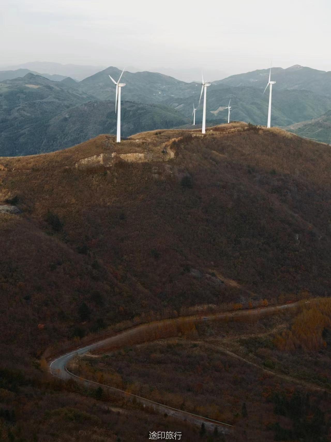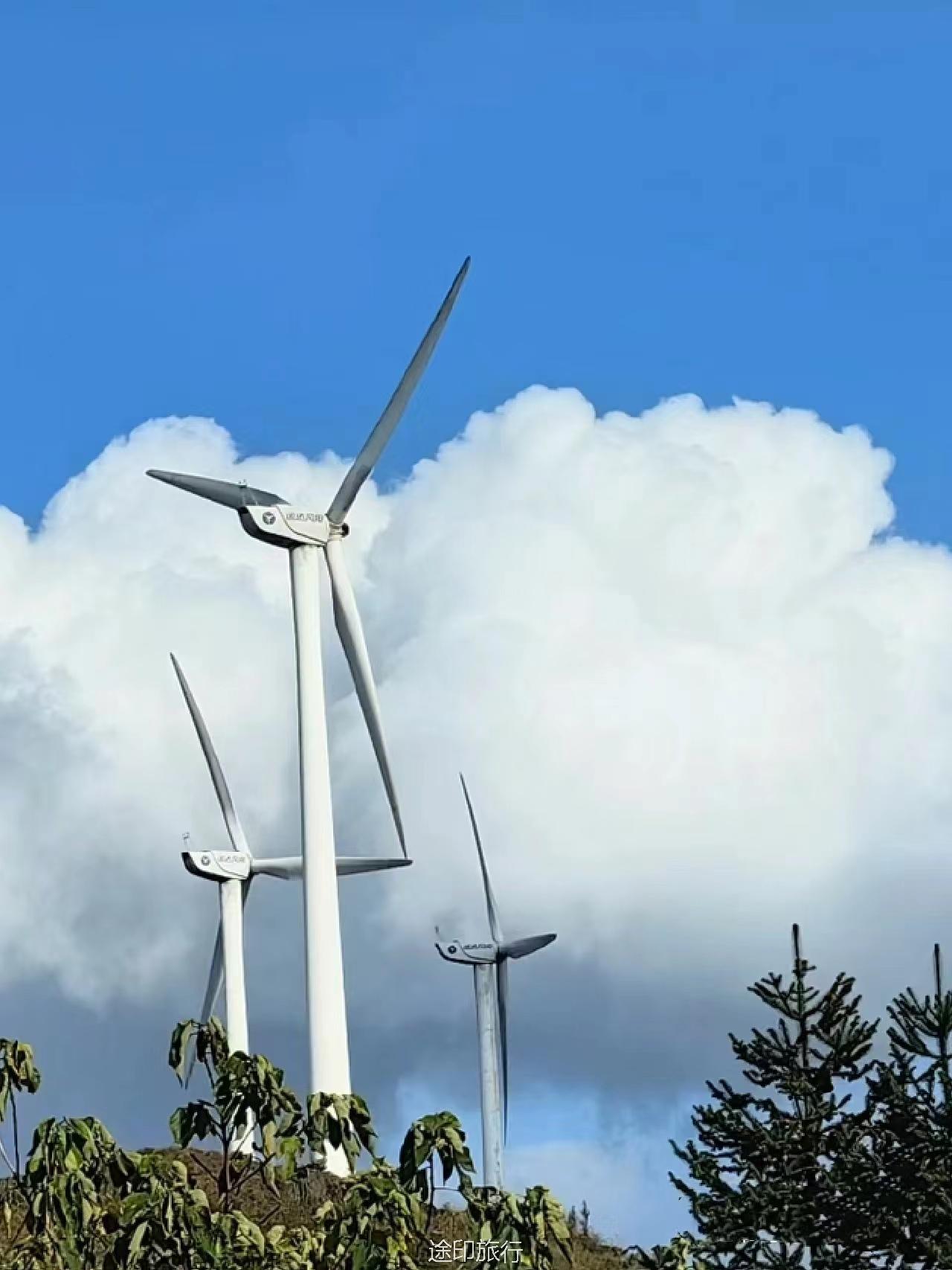 山顶上有连绵的风力发电机 一座座巨大的风车矗立在山中 蔚为壮观 走在遍布风车的道路上 徒步体验非常好