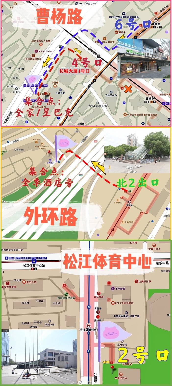 ①7:00曹杨路站 ②7:30外环路地铁站 ③7:55松江体育中心地铁站