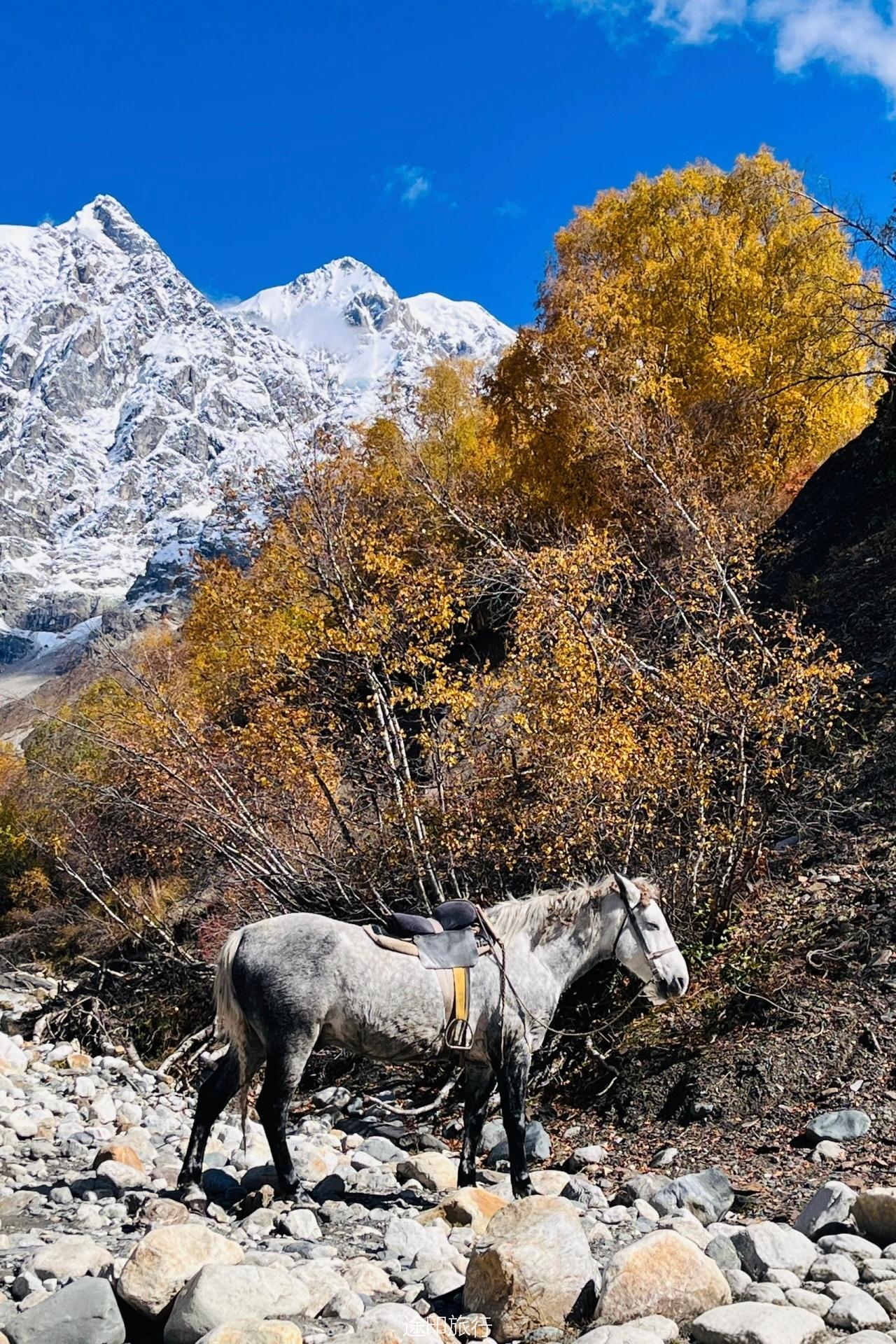 徒步信息:徒步距离约 12-14 公里,骑马过河,用时约 7 小时,海拔:2100-2800+