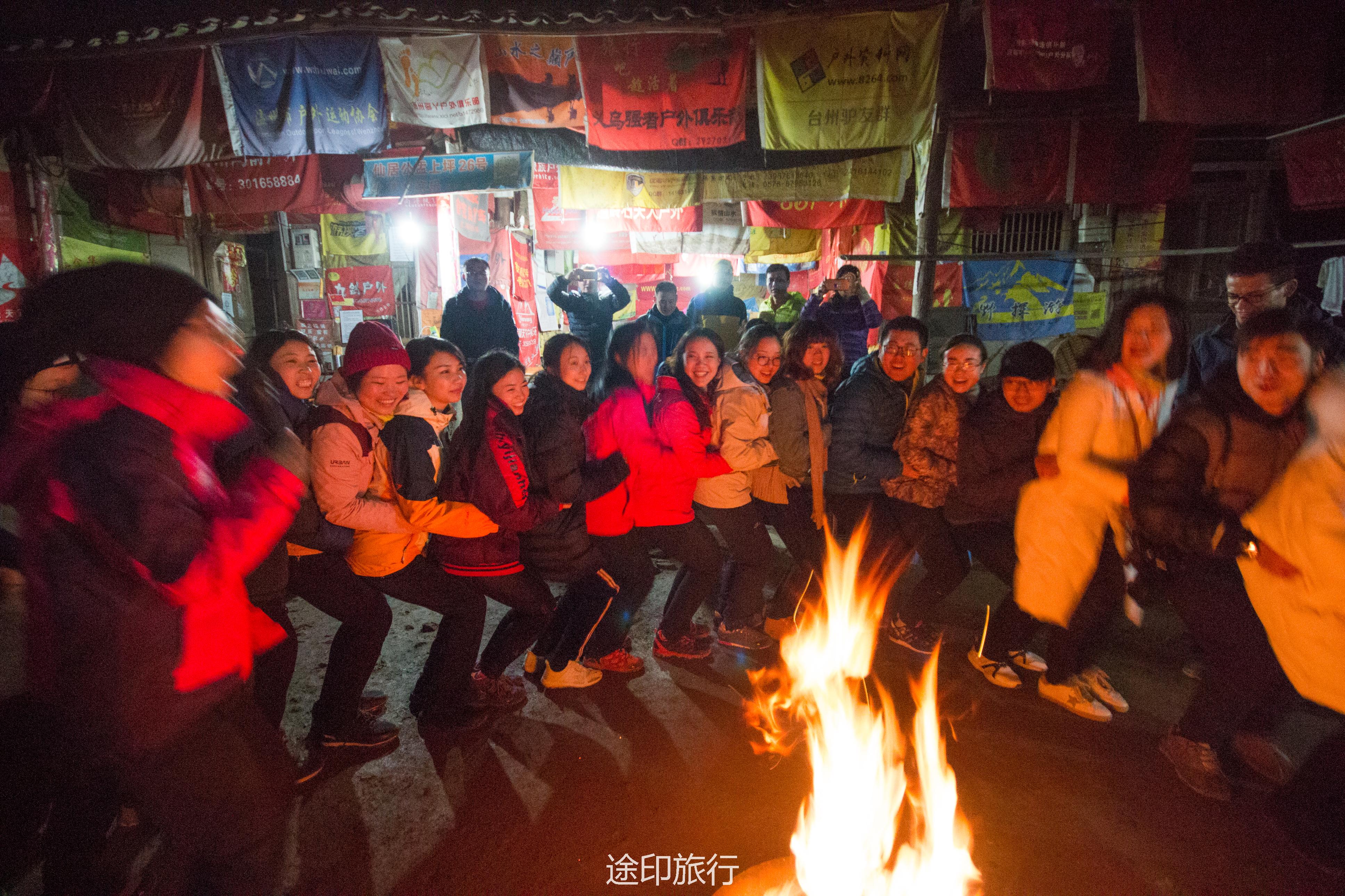 晚上大家围着篝火,玩起各种有意思的小游戏来