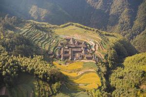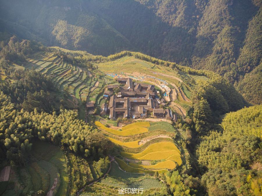俯瞰公盂村,梯田层层,古宅密布,隐世隔绝