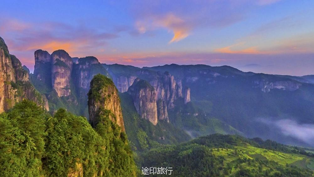 浙江的“香格里拉”之称的仙居公盂山位在浙江仙居田市镇,坐落在海拔600M的高山村落。与十三都景区边缘,造型地貌密度大、岩崖峰岗变化万千,以巍峨著称。地形构造呈多级梯状,中心海拔1150米,整个公盂岩巍峨鼎立,气势峥嵘,石林崖壁,各有风采。公盂村四面奇峰环绕,峰顶海拔在1000M上下,村庄被山峰围成了一个小小的盆地。攀上村南的公盂背,美景可尽收眼底。