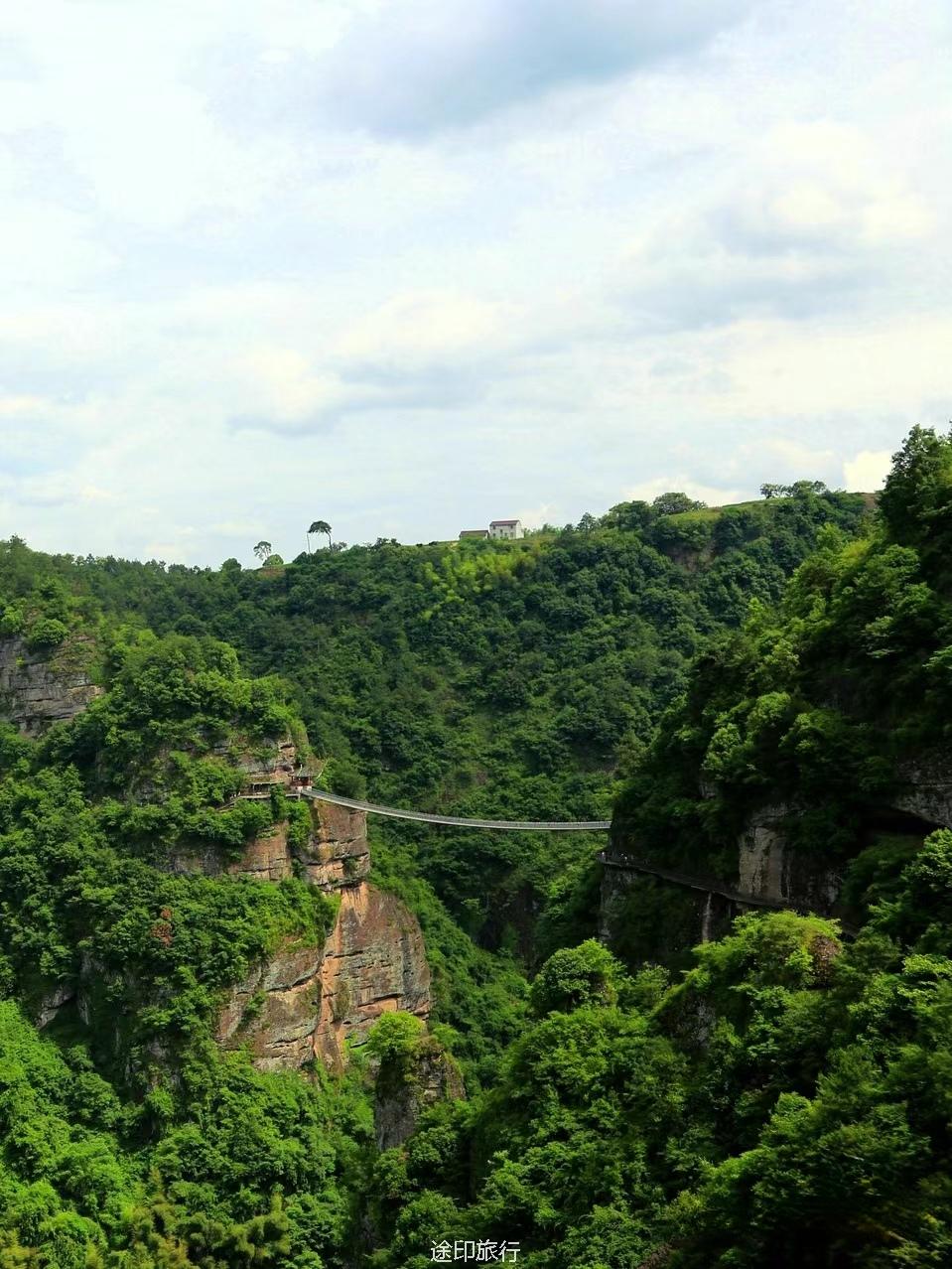 飞龙天桥:横跨两座山峰之间的壮观天桥,高150米,长138米,非常安全不用担心桥会晃。