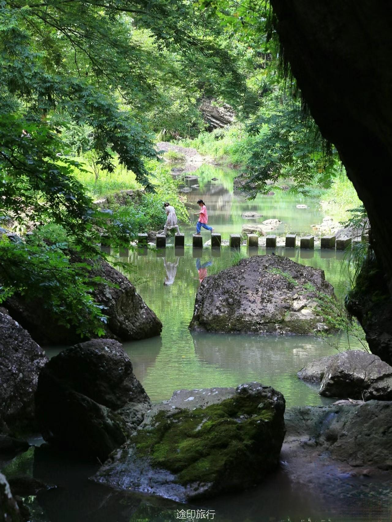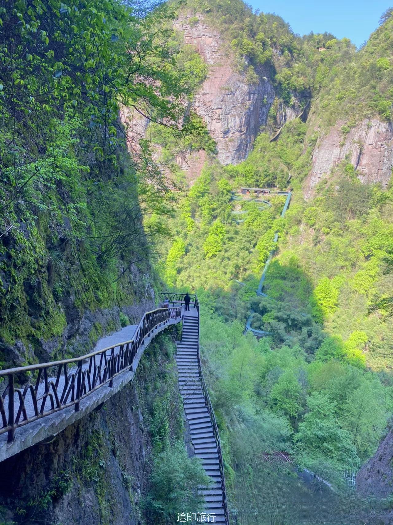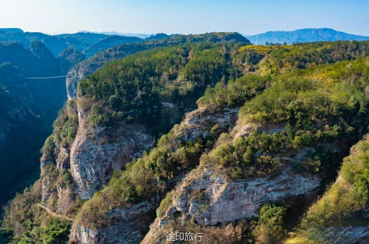 千丈幽谷:两峰之间峡谷幽深,谷底翠竹茂林,溪流环抱,曲径盘桓,幽深峡谷蜿蜒曲折,是一条不错的徒步路线。
