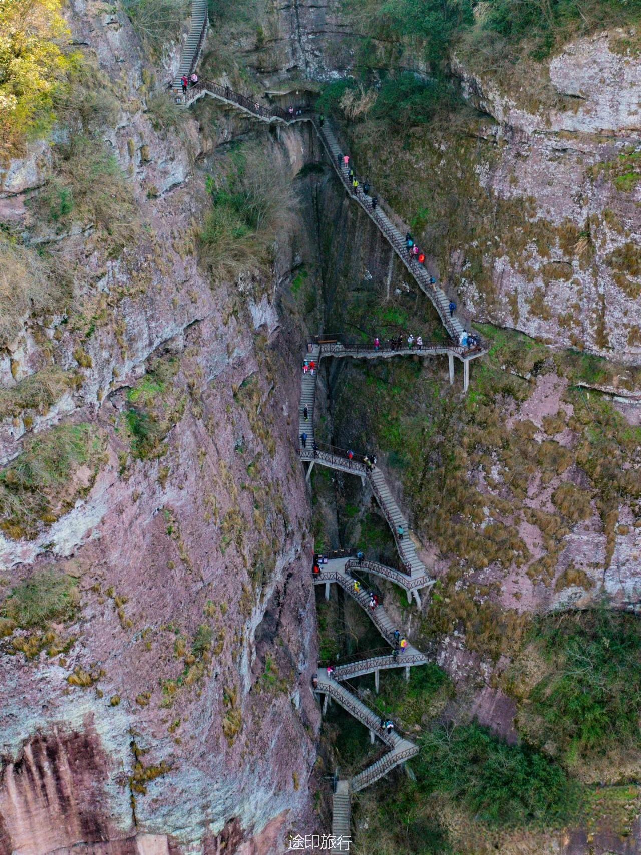 飞龙栈道:全长3200米,迄今国内全程最长的栈道,由古木栈道、玻璃栈道、飞龙天桥等组成999级台阶