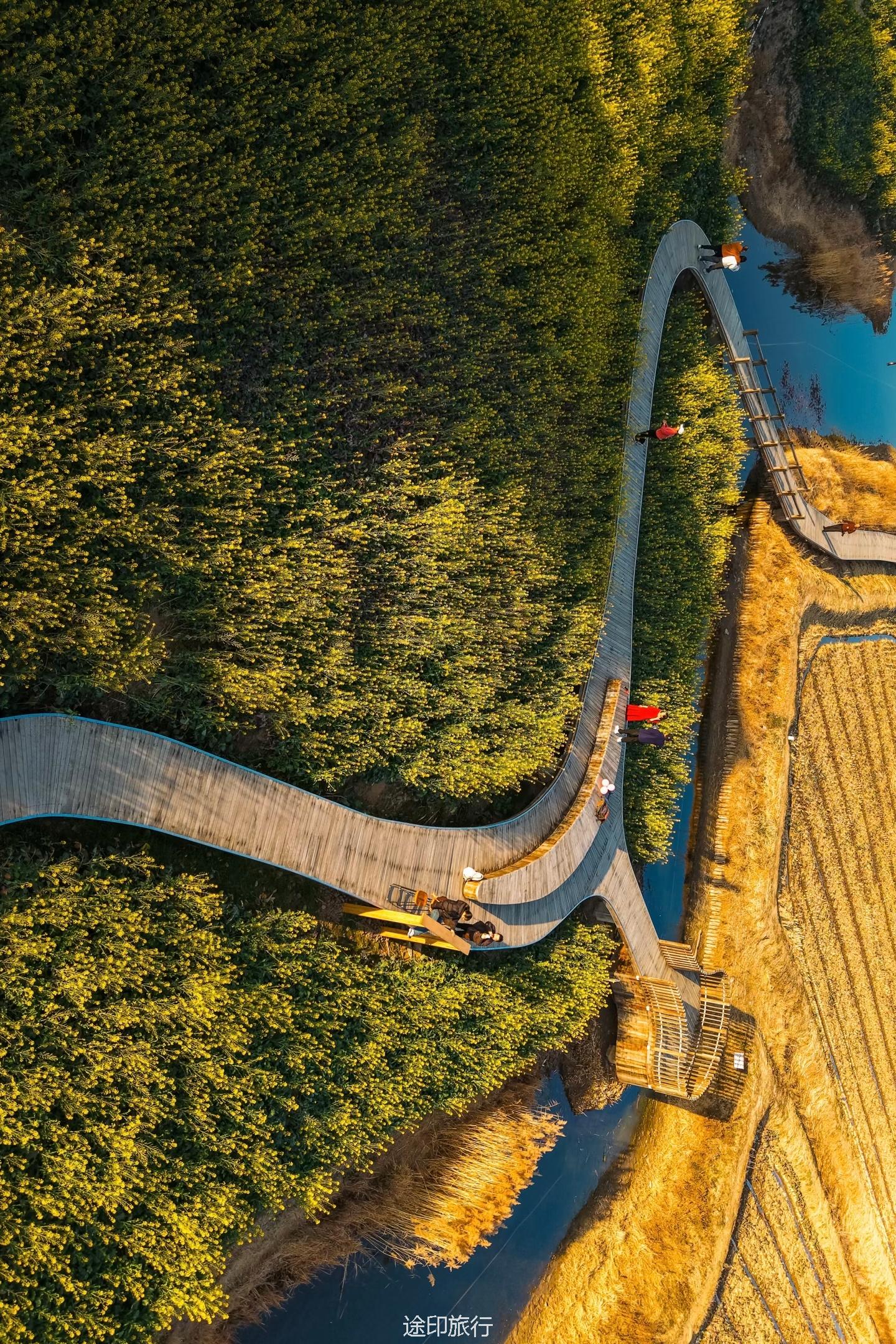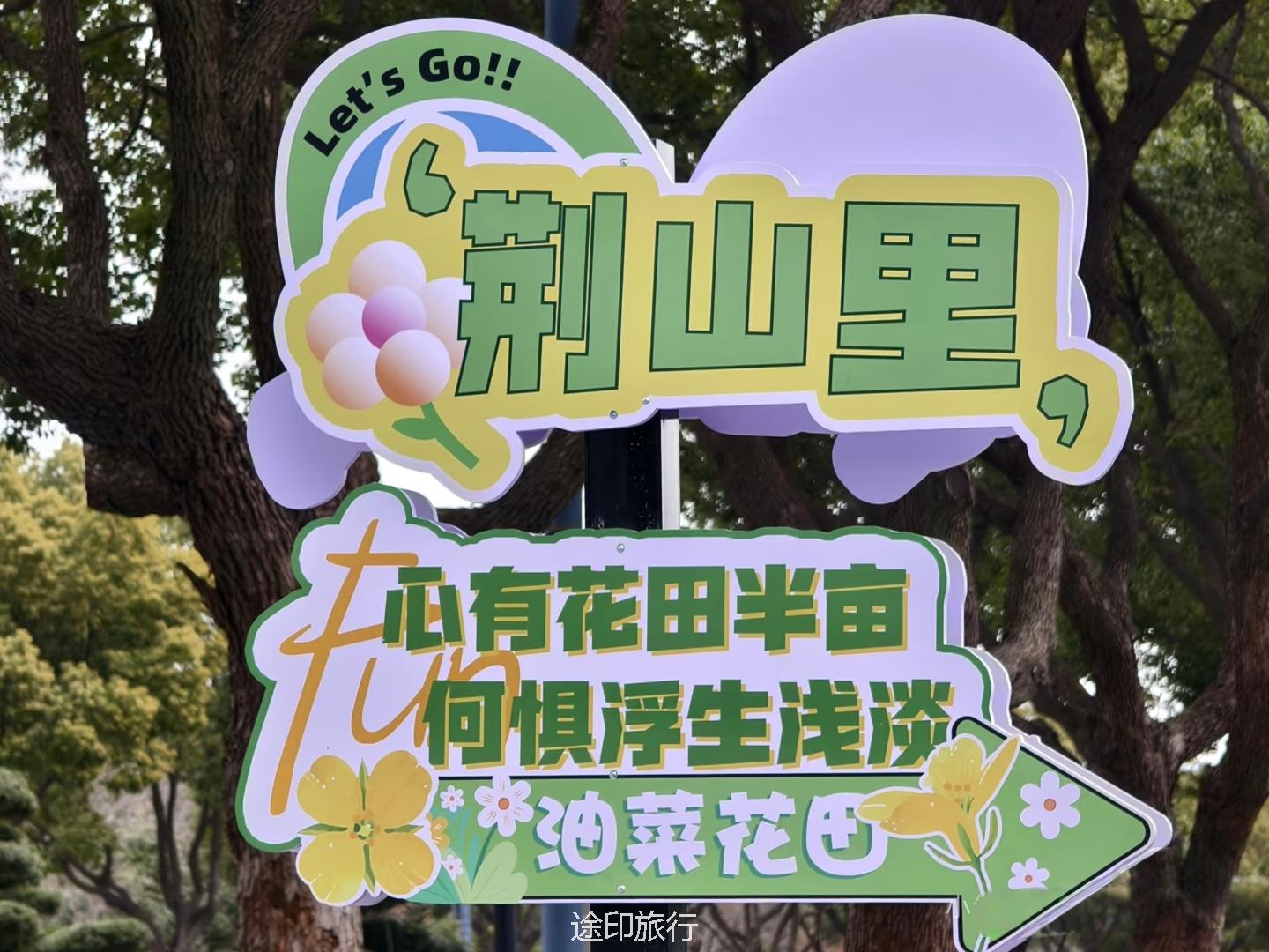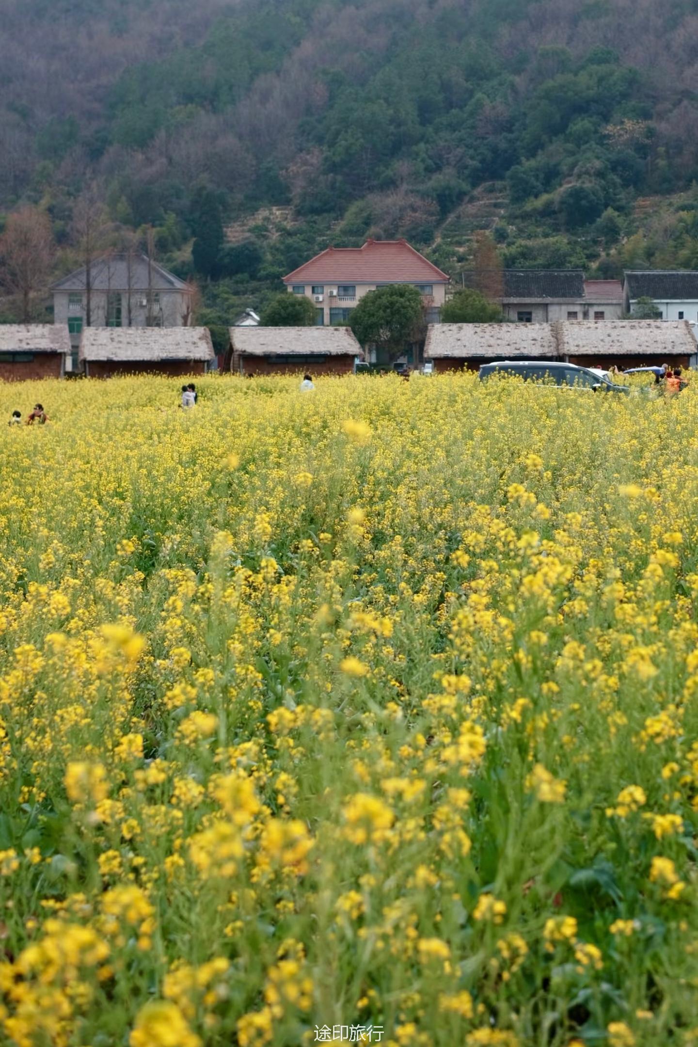 荆山里的油菜花田宛如一幅绚丽的春日画卷,静静铺展在南北湖风景区东大门旁。