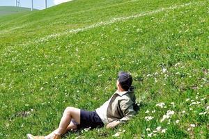 12:00左右到达山脊线,坐在草原山,看着云卷云舒好不自在,寻找合适地点进行午餐。