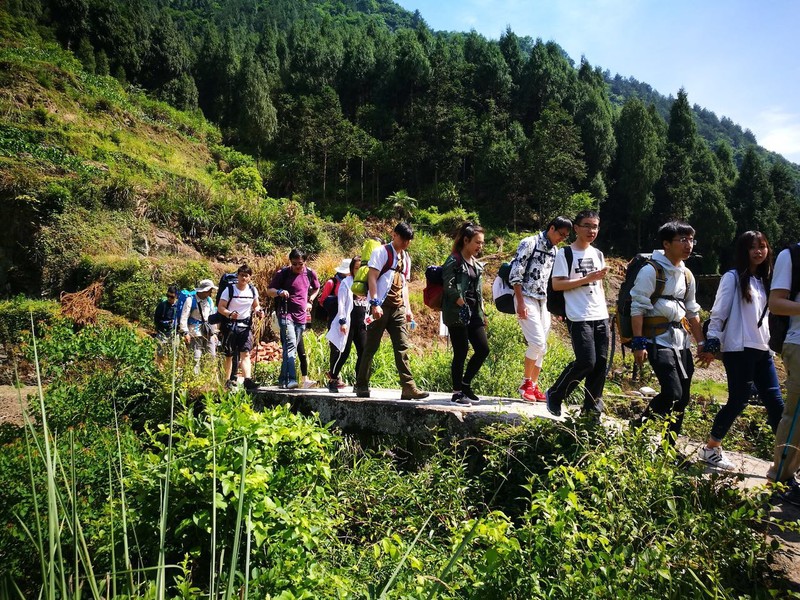 我们此行将近四十人的队伍,一路上浩浩荡荡,徒步路程起于前坑村,中午时分到达上平村,对于久在城市中生活的我们来说,这与世隔绝的小山村给我们一种陌生的美感。老农牵着水牛从村中走过,争食的大公鸡相互瞪着眼睛,破落甚至有点残破的屋子都能构成一道道美丽的风景。