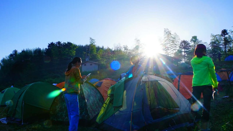 六月的仙居虽然炎热,但一路上,竹林小桥流水给汗流浃背的我们带来丝丝凉意。中午时分我们到达住宿的地方上平村,大家自由活动,有人休息也有人搭起了帐篷。