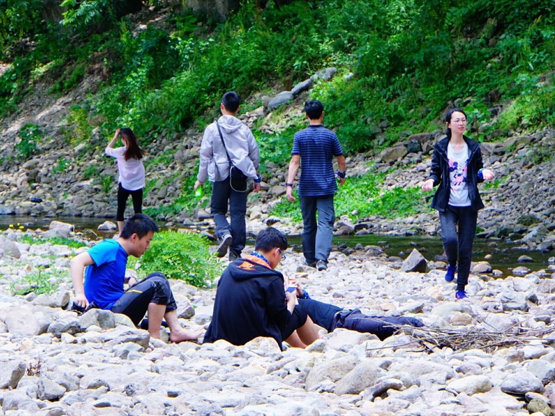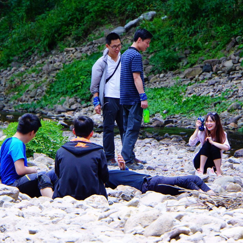第二天大家早早吃完饭出发,到达林坑村的时候,司机大哥早已等在那儿,接上我们吃顿饱饱的午饭,然后在小河边肆意的玩起了溪水,更有激动的朋友,跳入水中游起了泳。