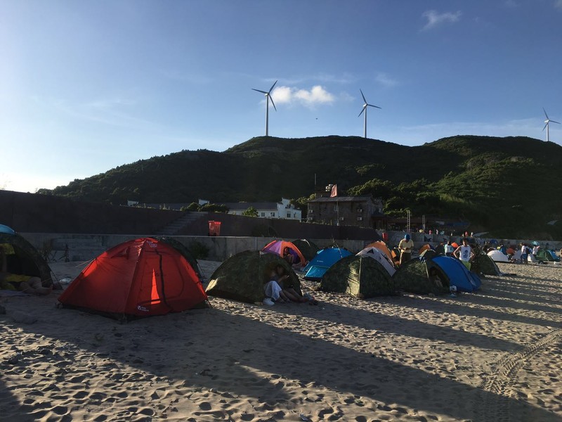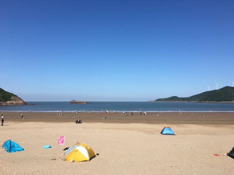 踏上檀头山岛后,有两种方式可以到达农家,一种是乘坐10元一次的电瓶车,另一种是步行前往,大概十几分钟就能走到农家。沙滩就在农家边上,岛上所有的农家都是统一管理的,房子也是并起来的一长排。