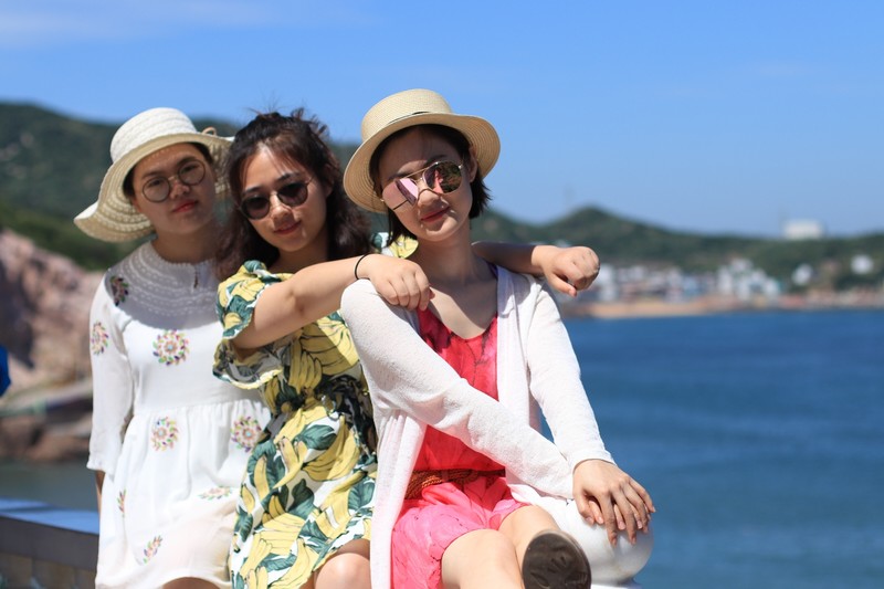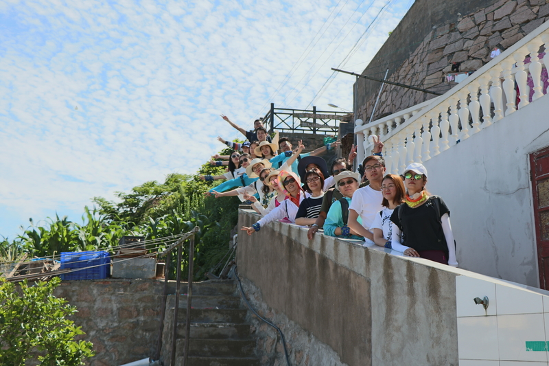 下榻的民宿就在海边,在院子里就能望见大海,大家迫不及待地与湛蓝大海合影。