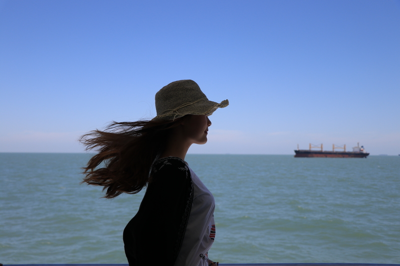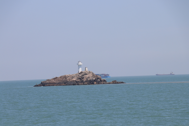 海水随着时间的推移由混黄变为淡绿再变深,预示着离碧海蓝天枸杞岛越来越近~