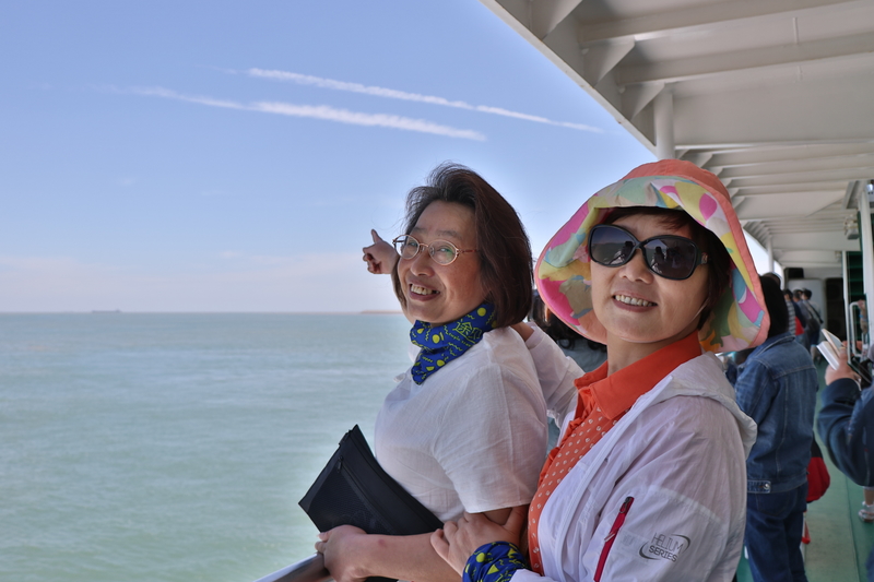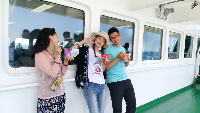 舟车劳顿也挡不住大家即将踏足枸杞岛的兴奋,大家在客轮的甲板上自拍,看风景,好不热闹。