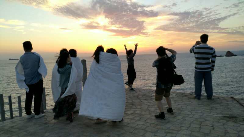 周日又是新的一天,三车的小分队4:00就起床出发去看日出,没有带外套的就裹着民宿的被子出发。