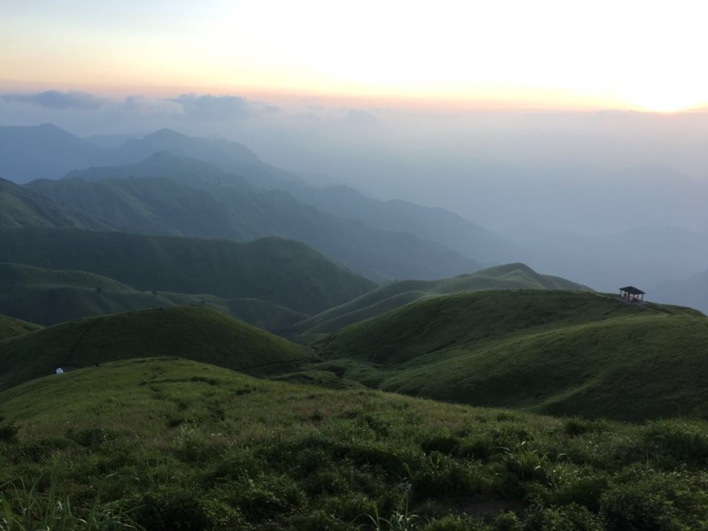 还没出发去武功山的时候,在上海40度的高温,我以为武功山也会这么热,这么晒,准备了各种防暑降温的药品,结果一样没用上,白天温度舒适,晚上把我冻的不行。这次的5人小分队,一个12岁的小朋友,特别厉害,全程打了兴奋剂,一路欢声笑语,我们也霸占了整个武功山,想怎么走就怎么走,横行霸道,我们运气也好到爆,到了吊马桩了,暴雨来临了,正好躲雨,后来到了住的地方,老板看到我们全身都是干的,很不可思议,直夸我们运气好,据说那天晚上半夜3点很多人爬起来,看到了流星雨,懒床的我没起来,后悔啊