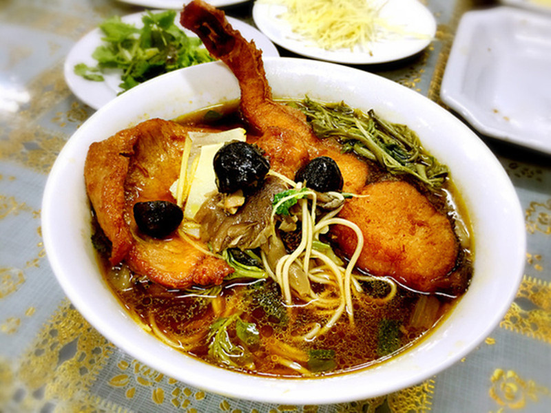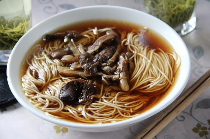 到了兴福禅寺,大家都点了面,这里的主打是“兴福蕈油素面”,然而大家研究后发现:他们做的大肉面,熏鱼面更好吃