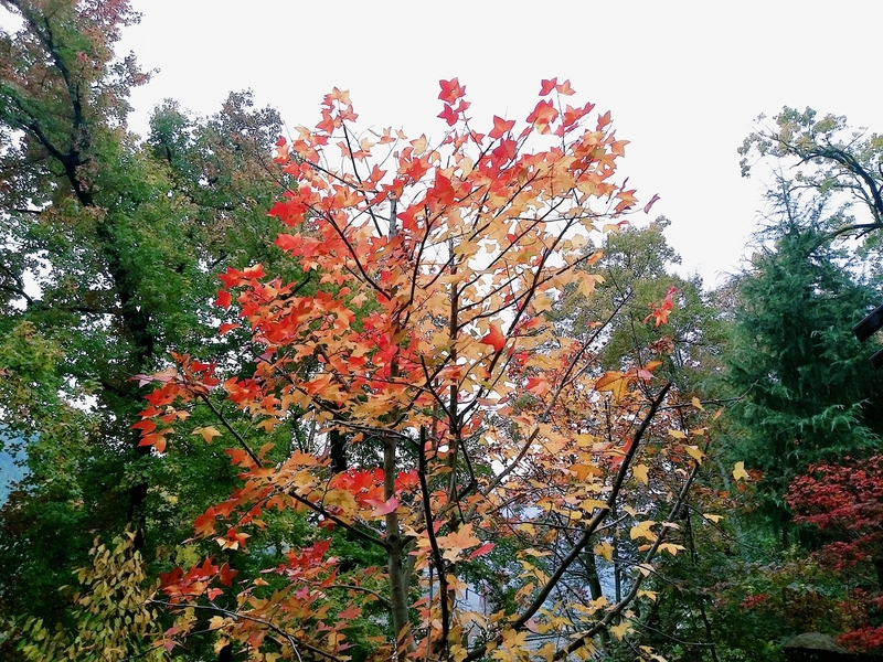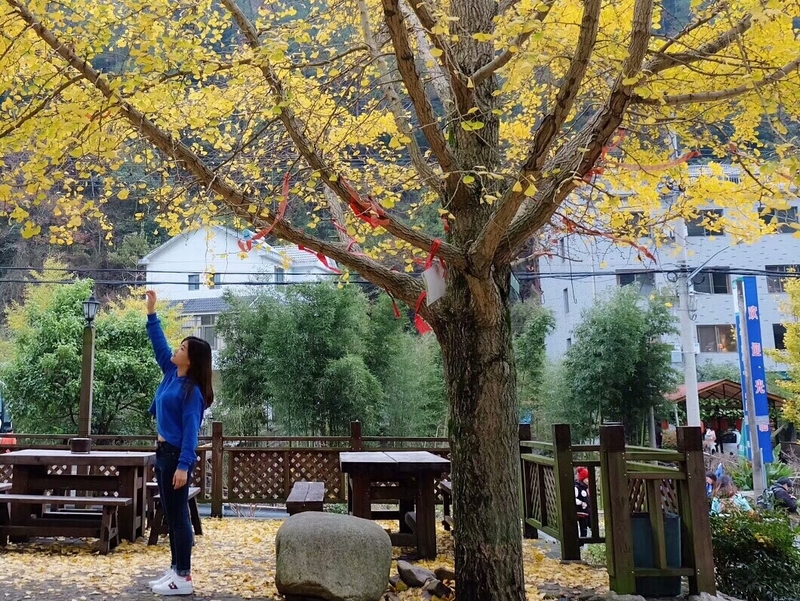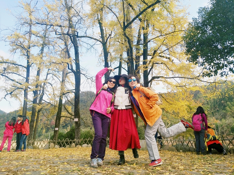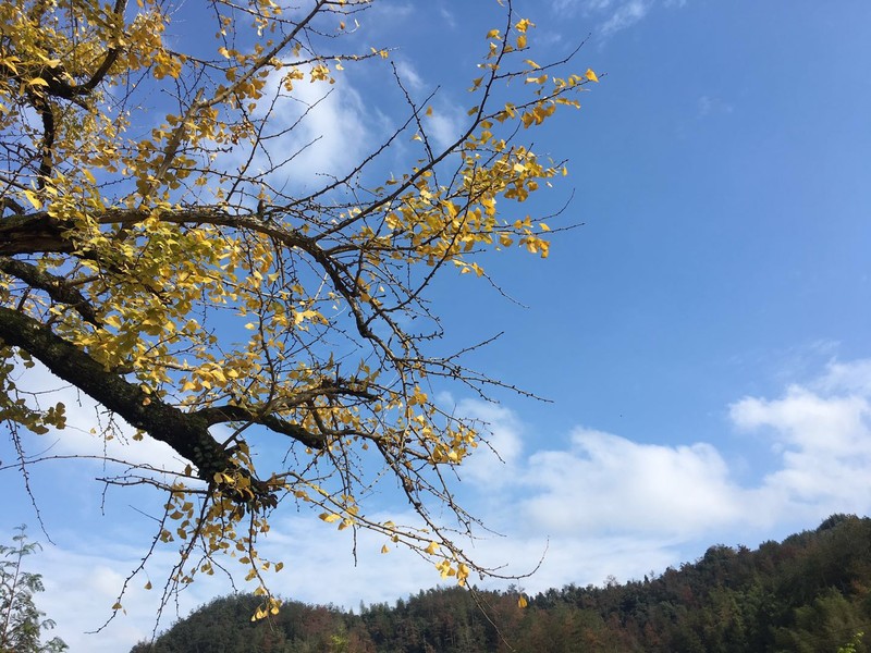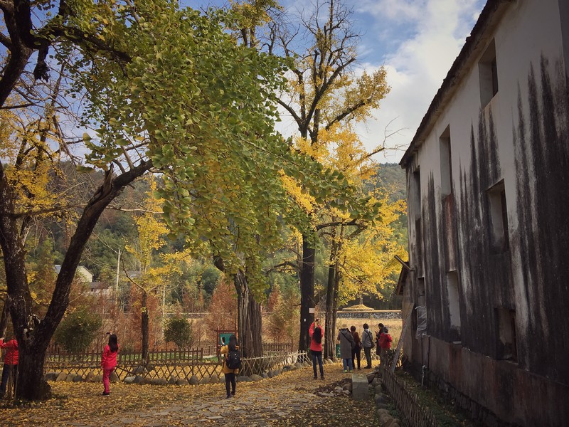 周六早上集合,魔都大早上的风也是冷飕飕的,历经一上午的车程,司机黄师傅带着我们向临安指南村而去。快要抵达终点前的一段盘山公路景色已然十分美丽,一颗颗黄得不尽相同的杉树在路两旁等着我们莅临,远处的山间一片的绿色中夹杂着明艳艳的红与黄。