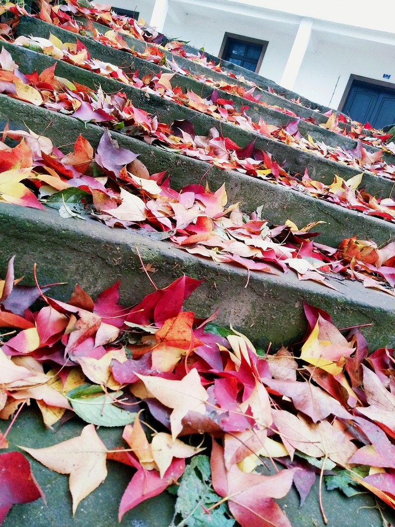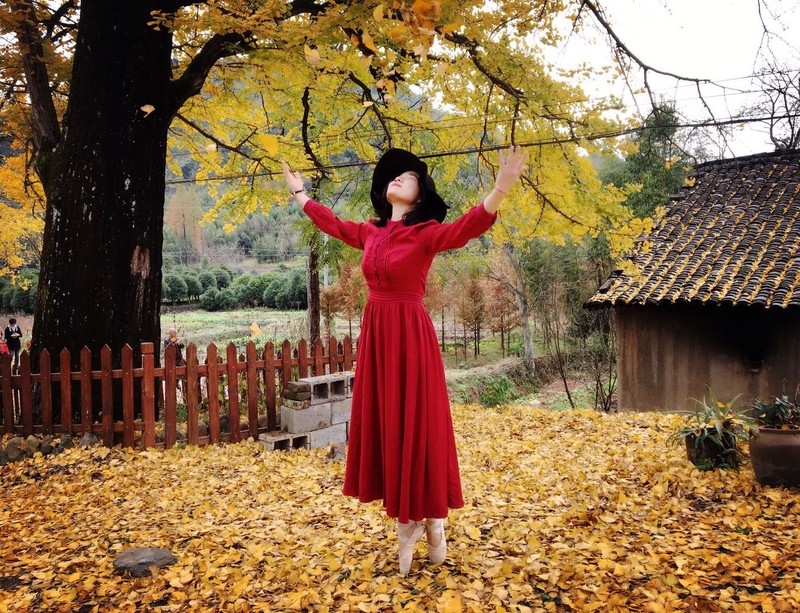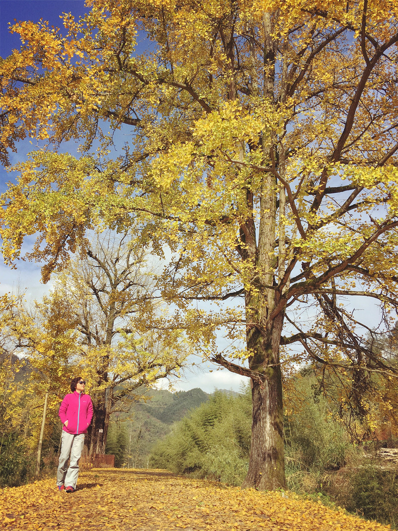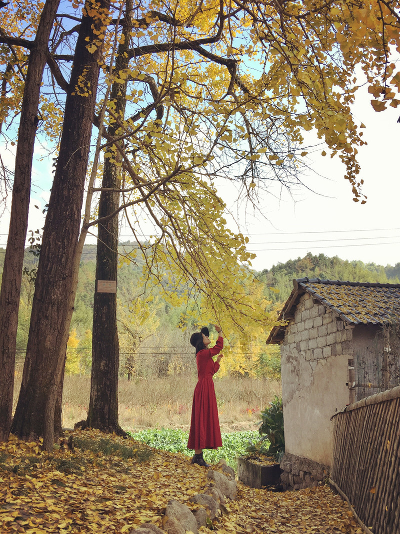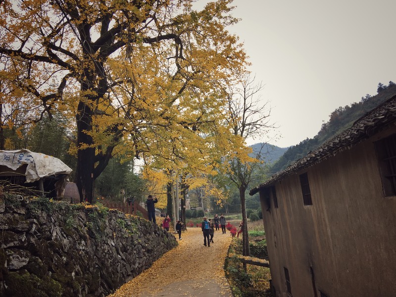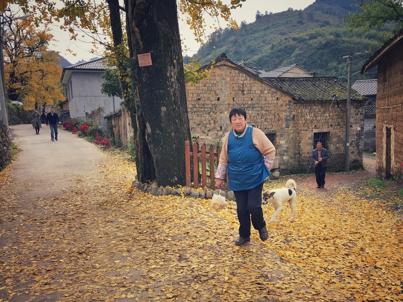 村里的石阶小道已经被落叶铺满,红色的枫香叶、金黄的银杏叶,漫步随意走走,呼吸山间田野间的清新空气,心情也不由自主地变得十分美丽。
