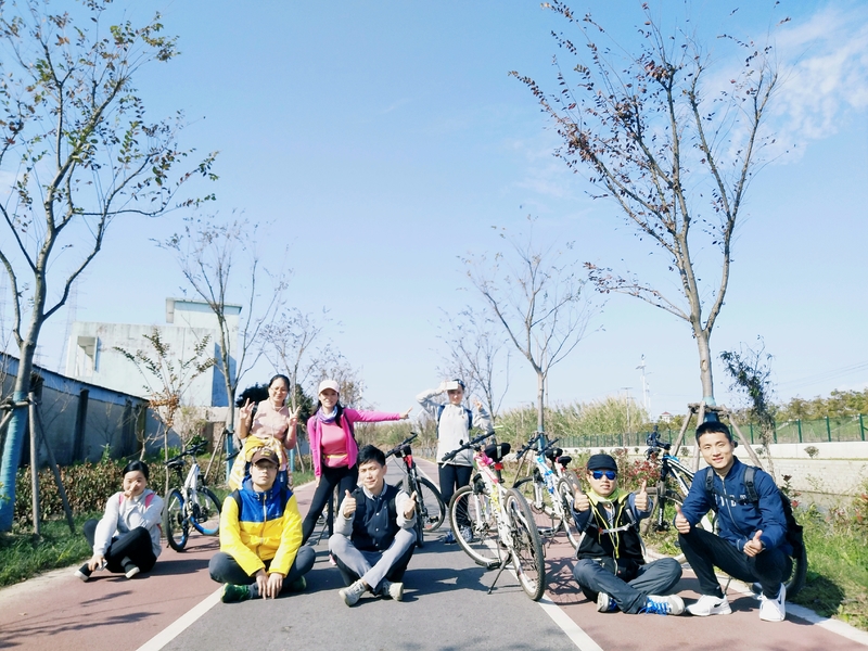这次我们骑行小分队一行9人,陆续抵达长兴岛集合点。先去全家采购了一波中午的午餐,互相自我介绍认识,然后便去领取自己的爱骑。