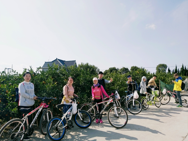 骑行约9公里后,我们就离开这条郊道,去农家采摘橘子。