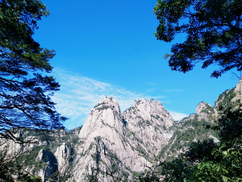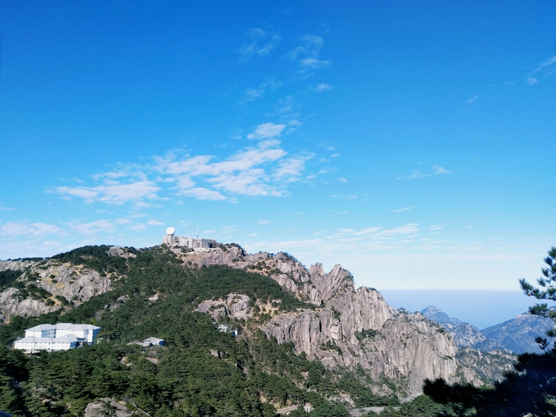 黄山毫不吝啬,一下车就给我们展现了它的美貌,蓝天白云衬着青山松柏,用手机随手一拍就是一张好看的风景照。