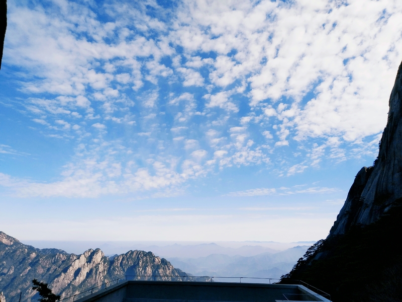 从慈光阁往上的步行登山道,风景还是很不错的,沿途将黄山的奇石怪松、壮阔山脉尽收眼底。美景抵消了登山的疲惫,呼吸一口新鲜空气呼出城市中带来的浊气,也觉得颇为值得。