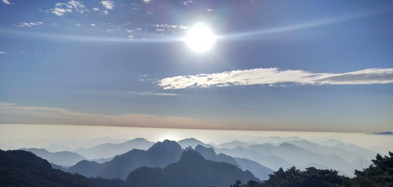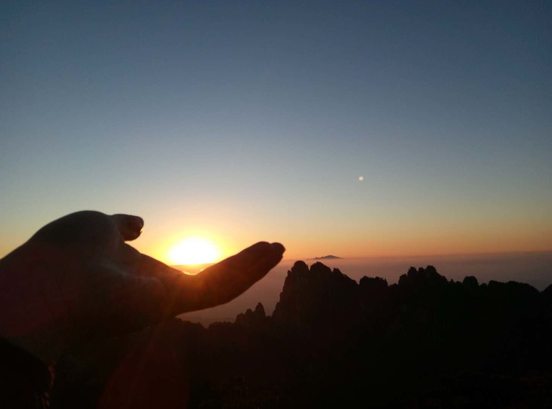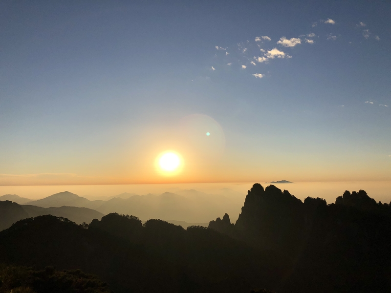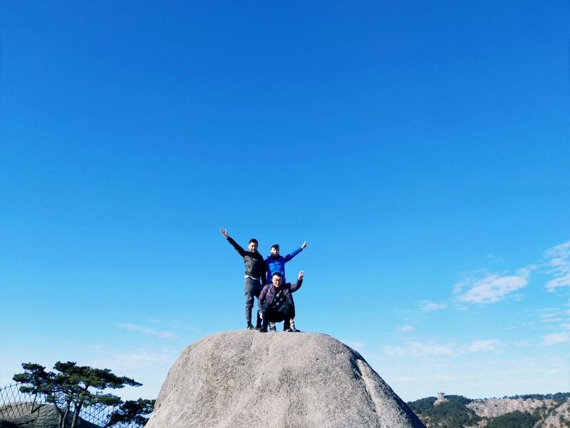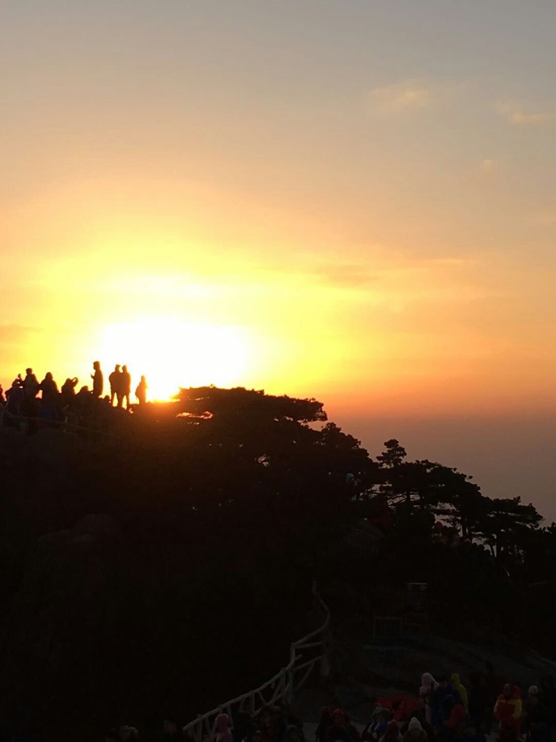 天公太过做美,虽然山上的低温最低已低至零度,但是依然没有下雪,反而两天都是艳阳高照,让大家看到了黄山原原本本的美貌,还有颇为完美的日出日落美景。