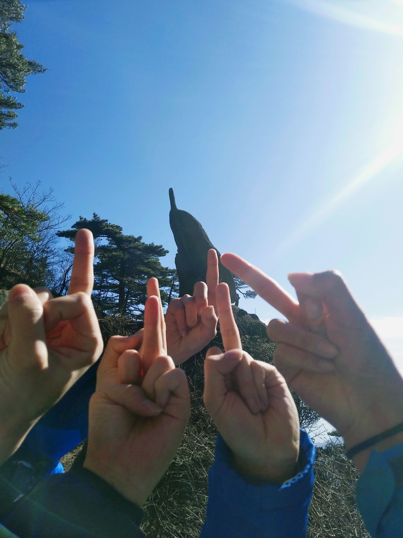 结伴同行,开开玩笑,吃着辣条,一路美景看过去,甚至有些审美疲劳。路过莲花峰,走过鳌鱼峰,一路前往光明顶会师。