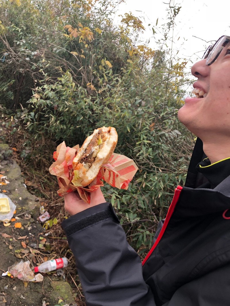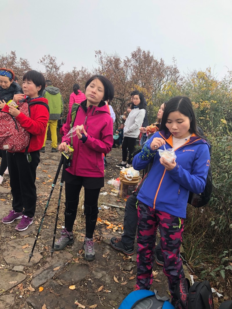 历尽千辛和万苦,当中还有小插曲,比如绕个路啥的,嘿嘿,小伙伴都不知道我绕路了吧,终于我们到达了黄塔顶,嗯我们开始午餐吧,小伙伴的路餐有够丰富的,吃的也特别陶醉,我们的美食姐姐还自己做了三文鱼饭团,超棒