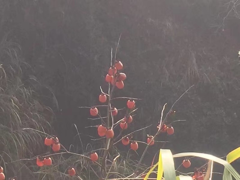 第二天下山的路上,看到了几棵野柿子树,然后,一群吃货嚷嚷着要去摘柿子,表示这群吃货才刚吃过早饭没多久呀⁄(⁄ ⁄•⁄ω⁄•⁄ ⁄)⁄。柿子树都是长在我们够不着的地方,这会儿就放几张图让伙伴们舔屏吧