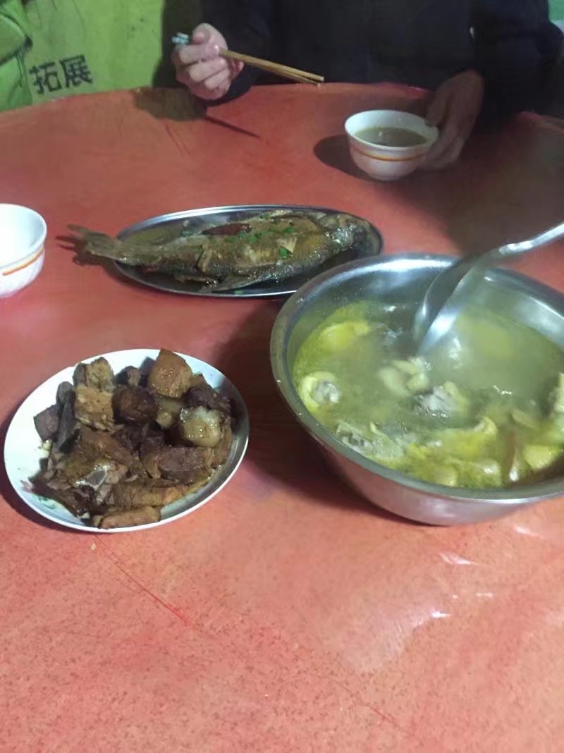 山下的午餐,不要怪我只拍到吃完后的照片,实在是菜刚上桌,筷子就伸过来了。路上说不饿的是谁呢?是谁呢?!(偷偷告诉你,有一盘是野猪肉哦,平时想吃吃不到的野猪肉!你能猜到是哪个盘子么?)