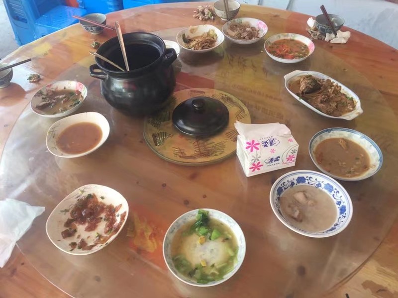 公盂的晚餐,表示老板家的鸡汤被我们喝到只剩下锅底了