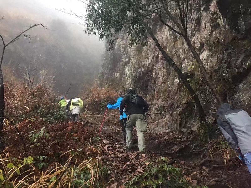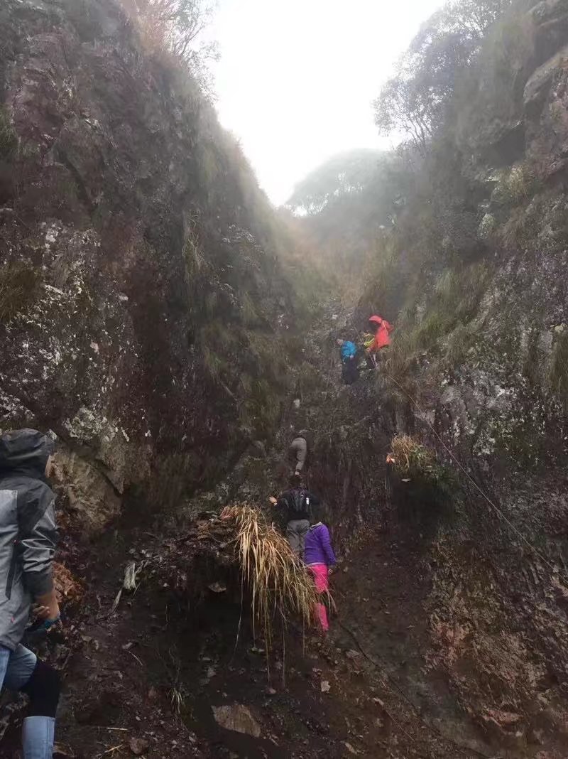 下雨过后,岩壁更滑了,出于安全考虑,带着伙伴们来感受了一下我口中的“一线天”。这里是要依靠臂力,借助绳索才能爬到上面的公盂背,危险不小哦。