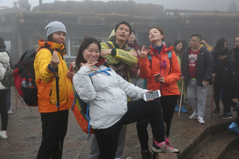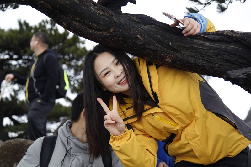 在缆车部队前往天海的路上,徒步队伍经过三个多小时的上坡长征抵达了迎客松午休,此处应有掌声,为他们鼓掌。