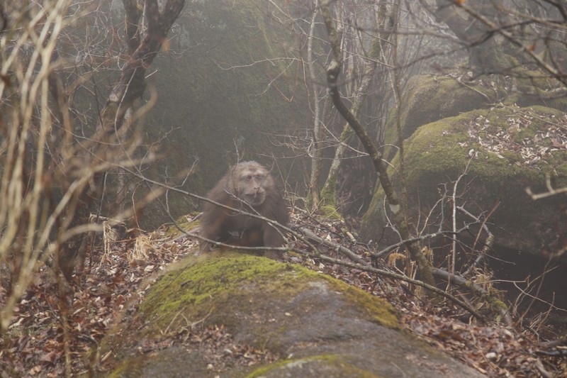 途中停下来休息吃午餐时,还遇见了两只黄山肥猴猴。冬天了,这些小伙计的吃食紧张,十分聪明地来找游客们要吃的,已经成了它们的习惯。但是对于野生动物们来说,最好还是不要去投食影响它们的自然生态习惯。