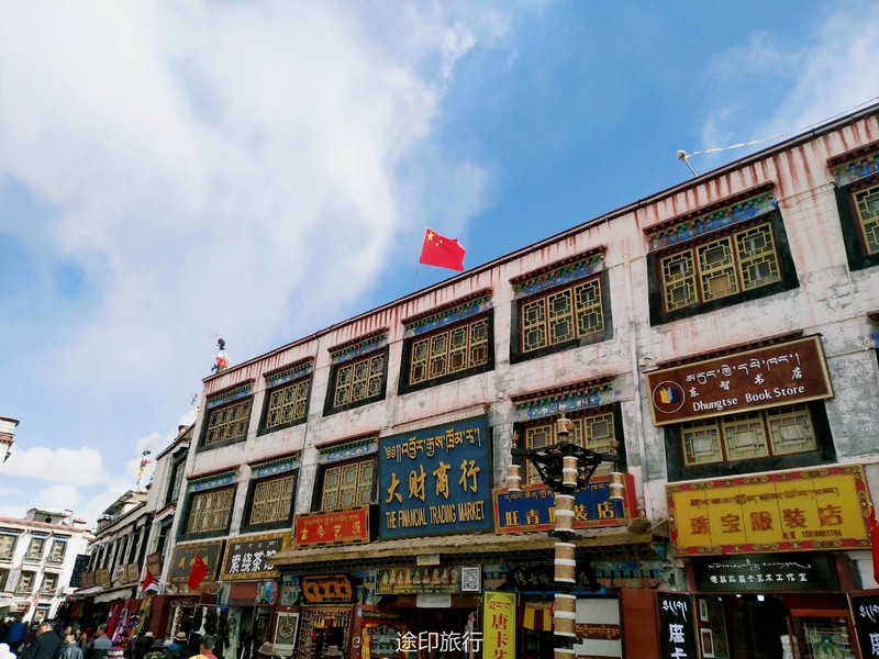八廓街是大昭寺外的巷落街道,虔诚的信徒或是绕着八廓街一圈圈地虔诚转经、或是面朝大昭寺五体投地地跪拜,手中的佛珠串是他们的计数器,转经筒转出的是美好的祈福祝愿。纵然身边有嘈嘈游客,他们也只专注于念经与跪拜,对信念的执着笃定,让人心生敬意。已经在快节奏的城市中习惯了都市节奏的人,很难静下心来去完成一件重复单调且枯燥的事,这一趟的西藏之行,某种意义上也净化了我们的心灵。