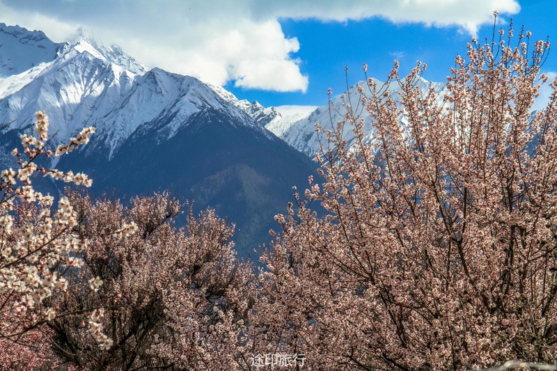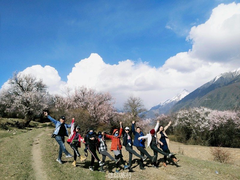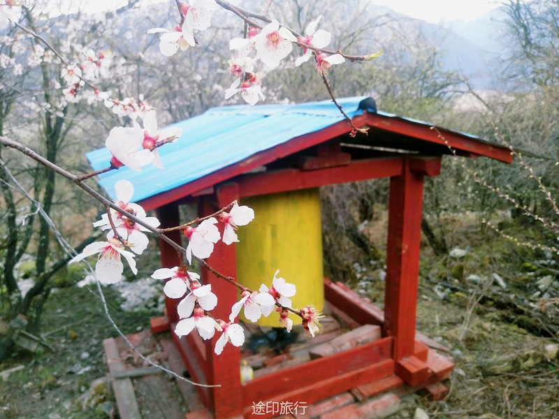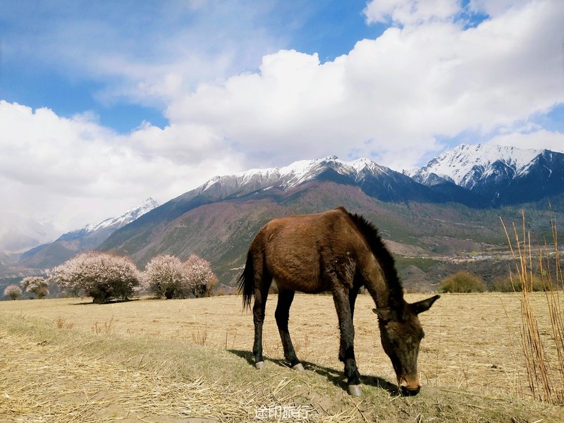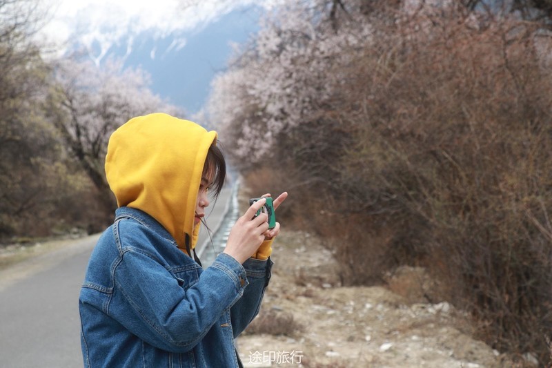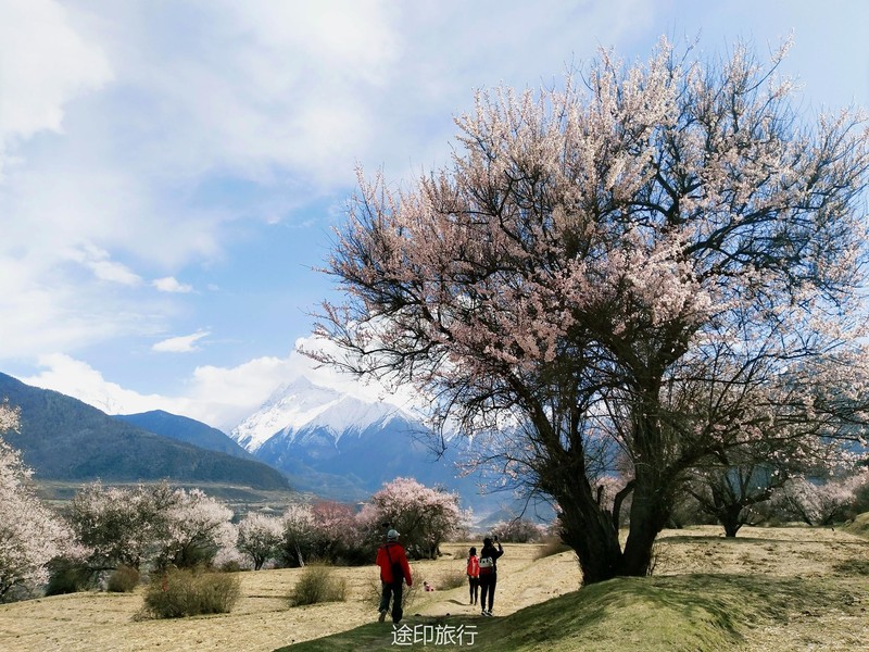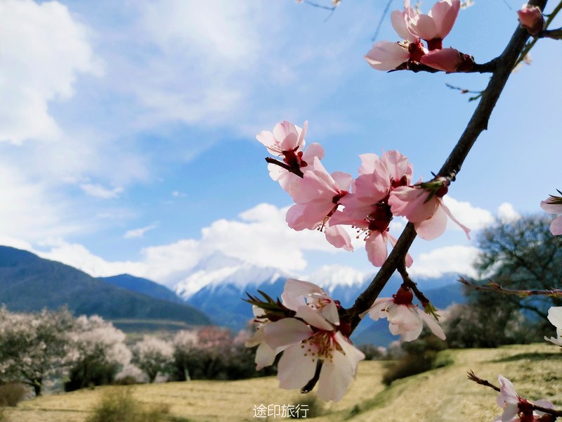下午的行程是在桃林里简单的徒步,西藏的桃树都是西藏式的粗犷,不像江南的桃花小家碧玉,生命力极强的一颗颗桃树,在雪山的脚下连成美丽的画卷。天气刚刚好,傍晚时分没有下午如火的骄阳,微风轻轻拂面而过,吹得整个人都平静下来。我想,如果在桃树阴影下铺一块大大的野餐布,带一壶藏式甜茶,面朝着雪山,我就能度过一下午的悠闲时光。