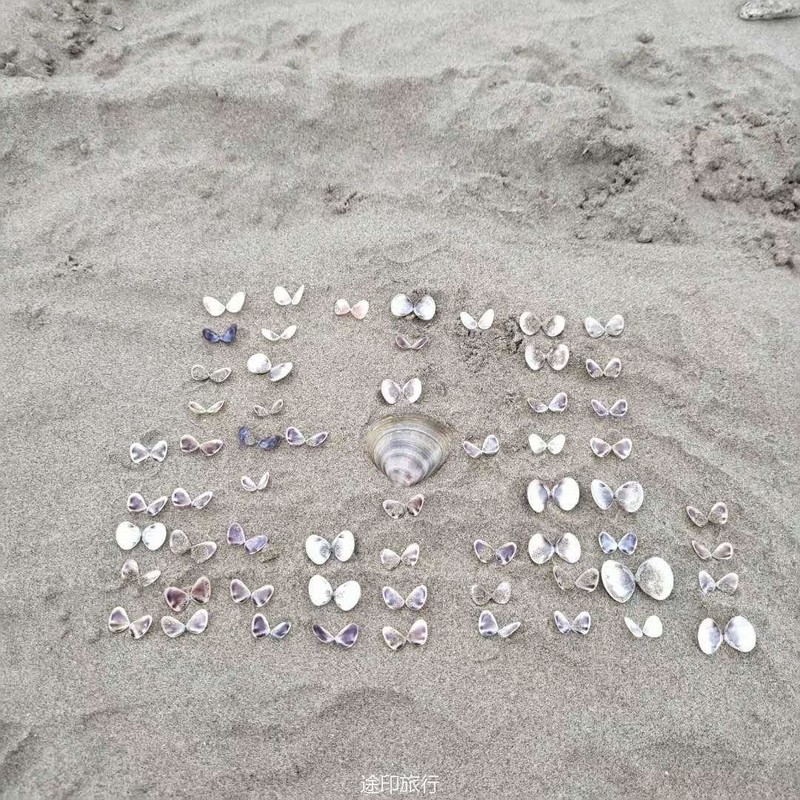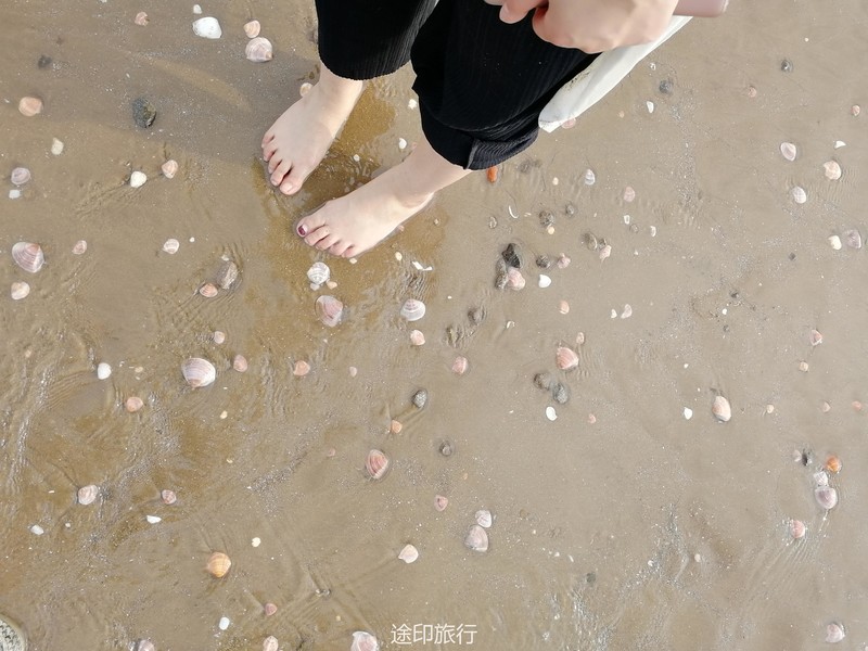 小朋友也不无聊,海边捡了很多小贝壳
