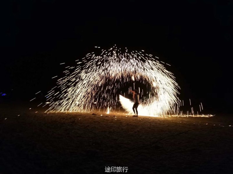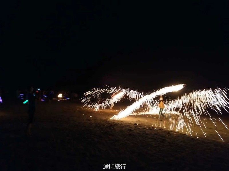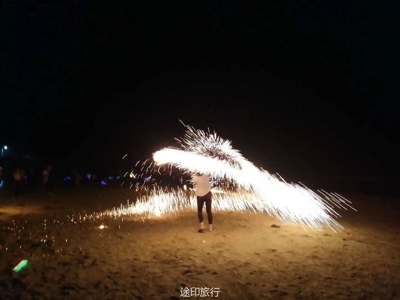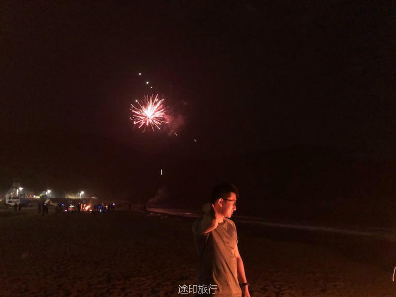 到了晚上欣赏的烟火,在海边篝火晚上就这样开始了
