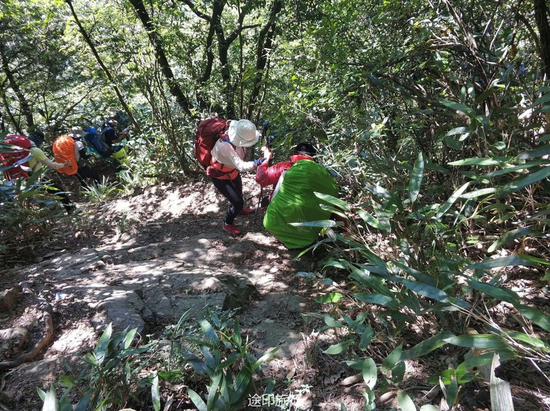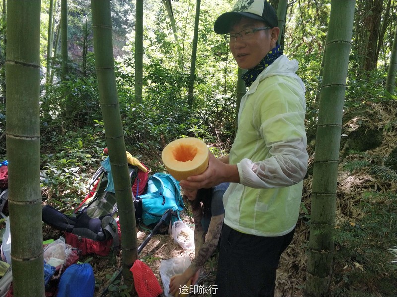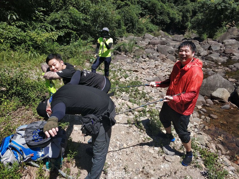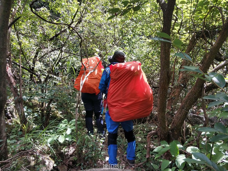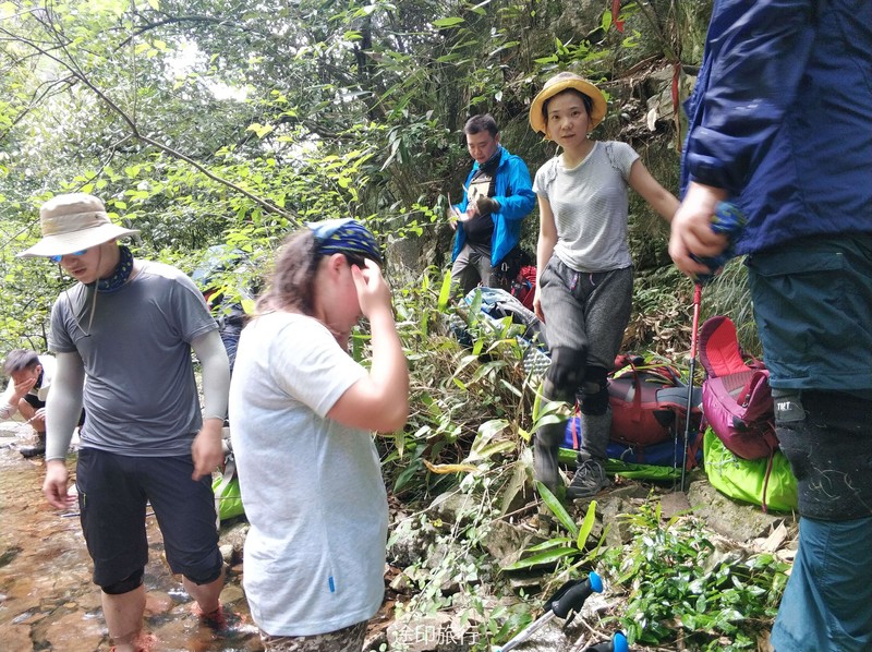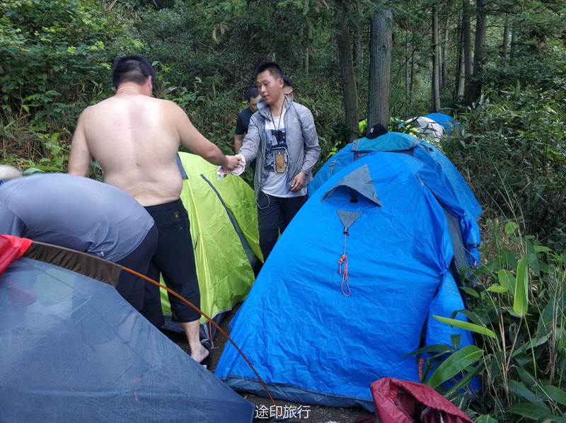 疯长,有很长一段时间我们必须在密林里开路,头都抬不起来,加上天气炎热我们有领队渐渐的开始体力不支,出现了中暑现象,下午走到16点后第二组领队已经意识到了我们上午耽误的时间多了,没有评估好下午的难度,下午基本都是在上坡加上道路不好走,我们的原计划是16点抵达营地的,目前看来17点都很难抵达了,由于体力的消耗部分领队不得在路上需要降温休息,也让他们意识到了自己的东西真的带了太多不必要的物品了,路上让个别领队的物资进行了调整,在离抵达营地最后1公里处,也出现了当天最大的意外,走在最后的领队由于体力消耗没有注意岔路结果走错路,最后为了快点赶回大部队,不得已丢弃了晚上的部分食材以便尽快回到原路,得知领队走错路的消息安排了先行抵达的营地的领队,轻装下山去对接最后几位领队一起回营地,通过这样的事情也很好的暴露了问题,对于自己的体力评估和对物品规划的合理性,出现紧急情况的应对能力。另外还有一个问题就是水,对于喝水的习惯和分配一定要养成习惯,这也是给几位领队好好上了一课,如何控制自己的水量和喝水的习惯。