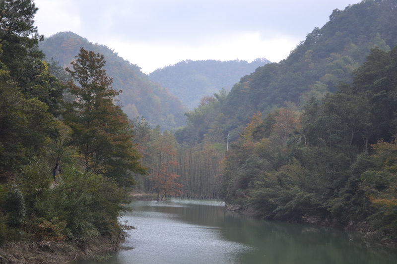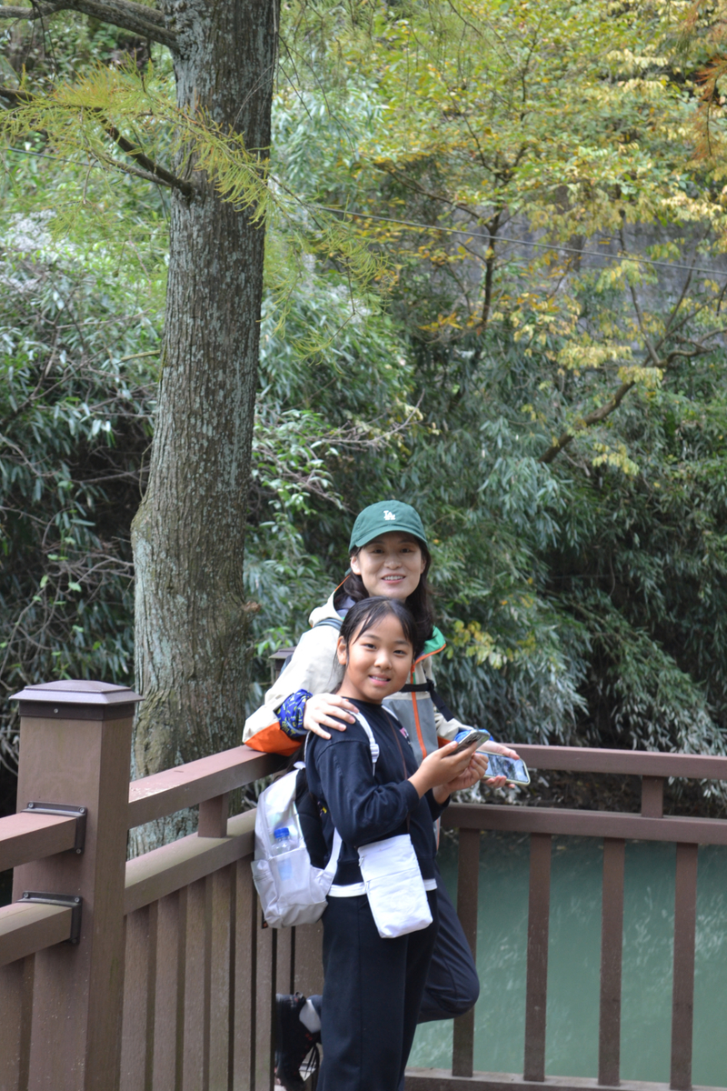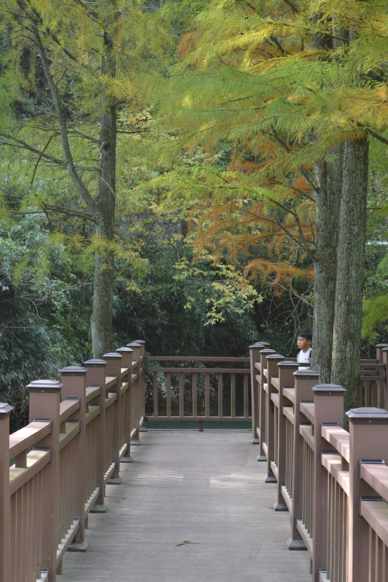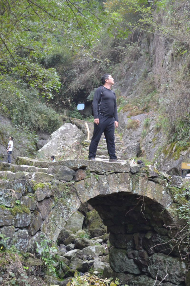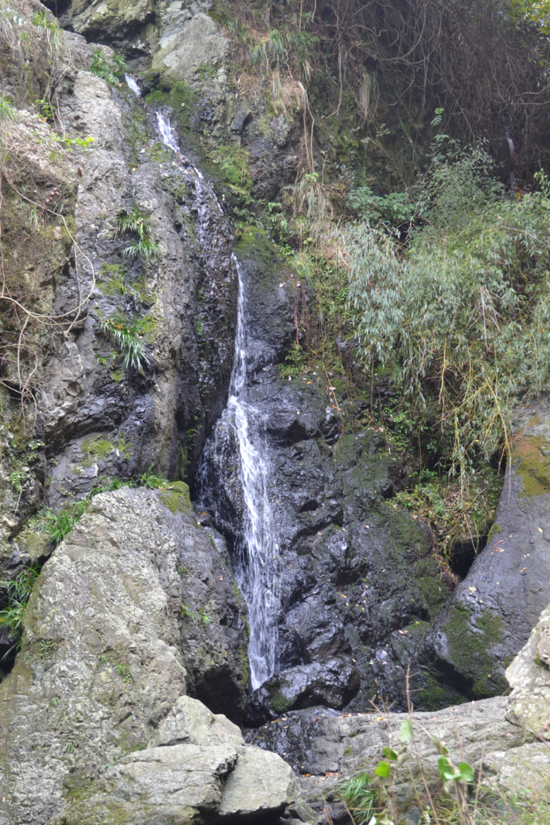 在水杉林里停留了许久,我们才恋恋不舍地踏上了下山的路。沿着古道下山,脚下是天然石块砌成的台阶,高高低低,仿佛在诉说着岁月的故事。先是经过水库上的桥,观景台、瀑布、石桥,一路上,山峰相叠,山石相迎,翠绿的山峦与奇形怪状的石头相互映衬,形成了一幅天然的山水画卷。