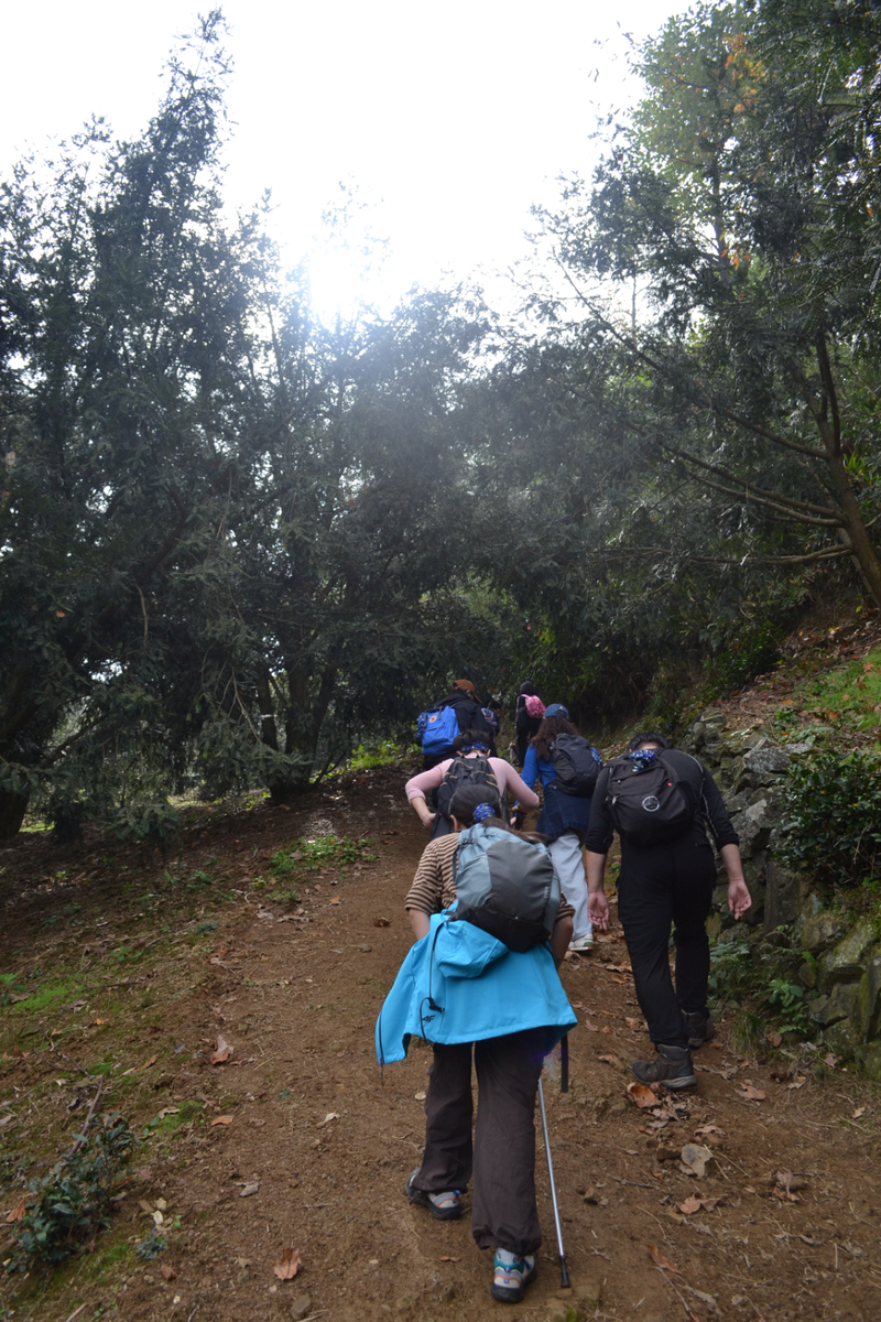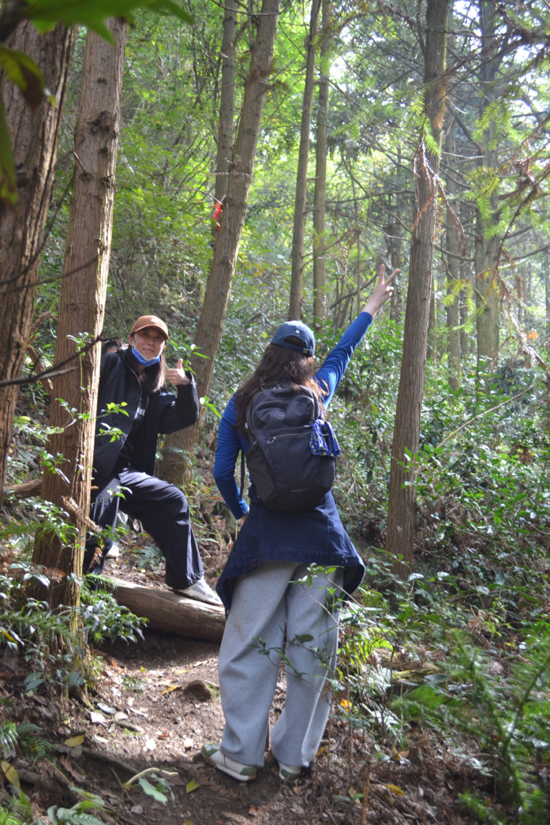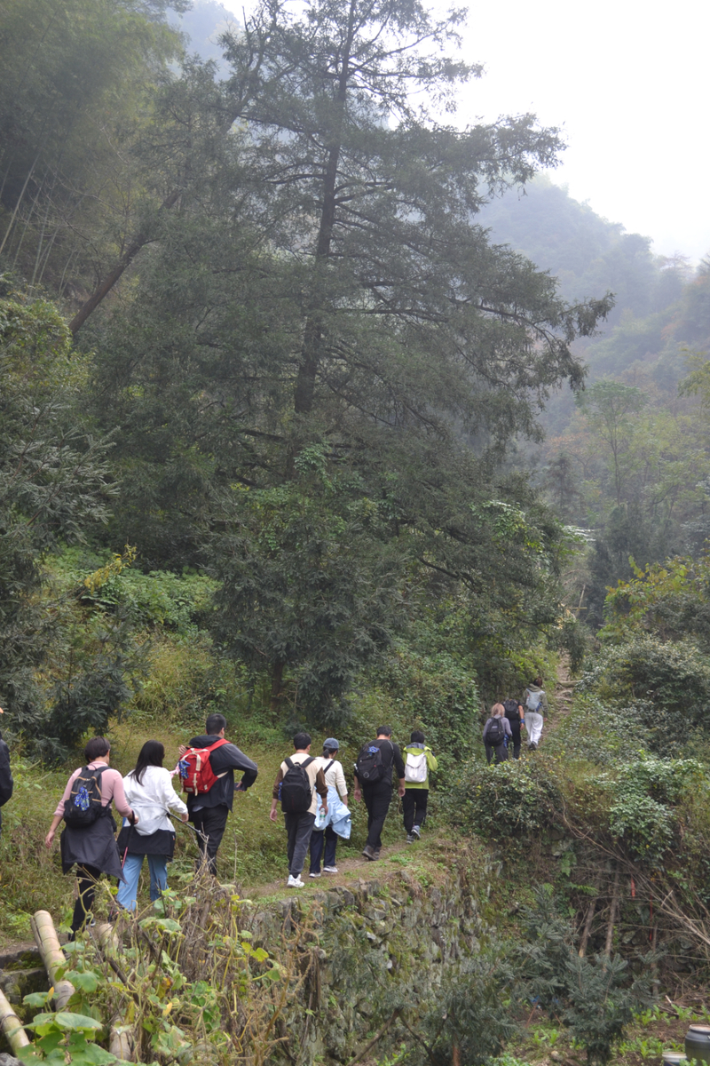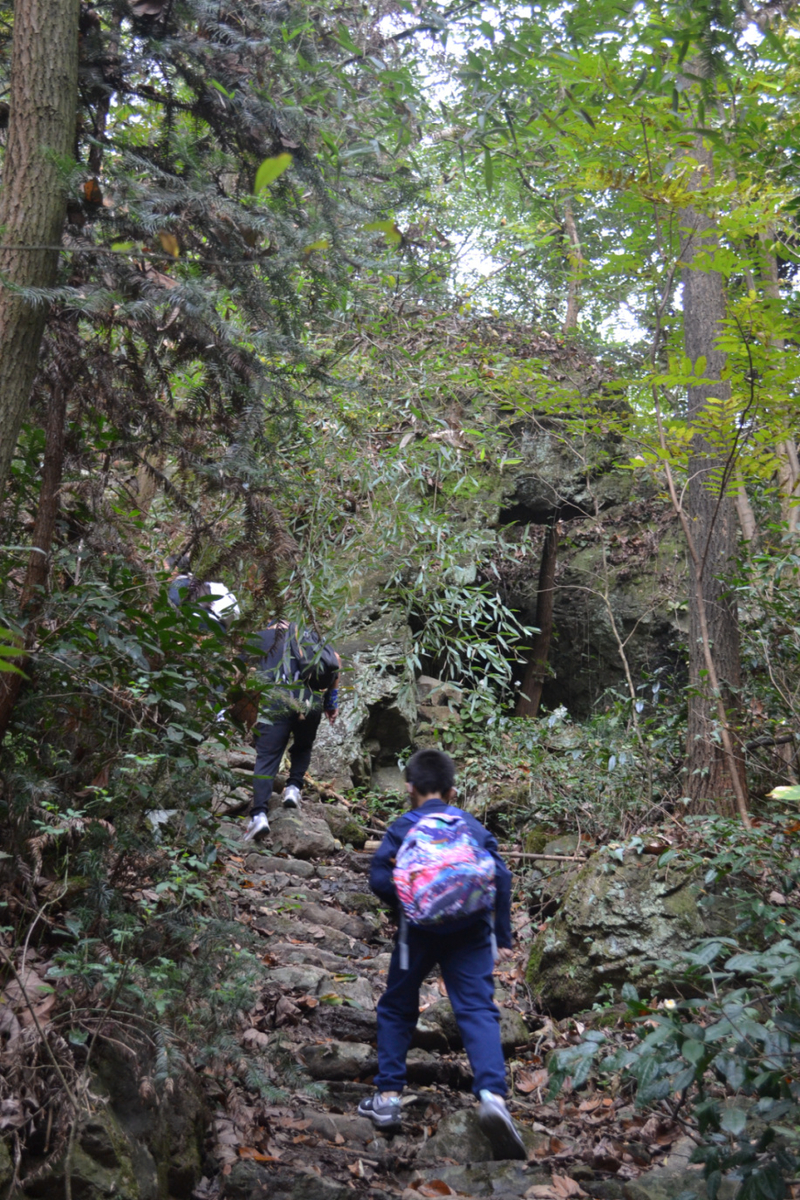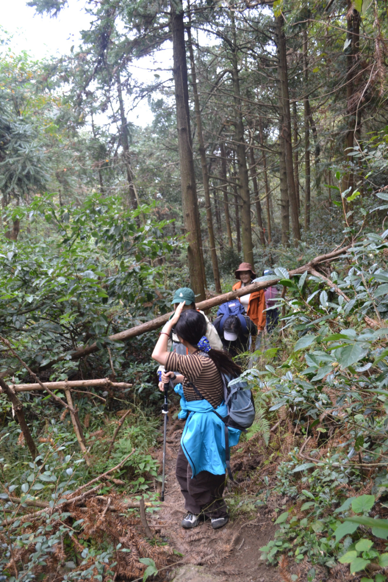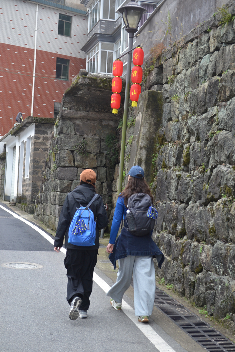 这次我们是走的反穿路线,先走不规整的石头山路,经过农家、树林、竹林,随后来到古树的香榧林,这里视野已经开阔了。相比这段的下山,上山的路相对轻松一些,但也需要小心谨慎,因为有些路段比较陡峭。到了山顶后,我们在这短暂休息,远眺远处的风景。